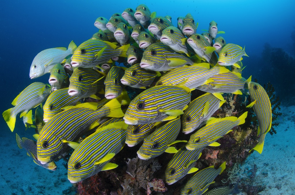 Thế nhưng, bốn hòn đảo nổi tiếng đó quả thực chỉ mới là điểm đầu trong chuỗi hành trình khám phá và thám hiểm thiên nhiên kỳ vĩ của Raja Ampat. Nằm ở khu vực Tam giác san hô (gồm Indonesia, Malaysia, Philippines, Papua New Guinea, quần đảo Solomon và Đông Timor), Raja Ampat có nền đa dạng sinh học biển lớn nhất thế giới. Với hơn 1.300 loài cá rực rỡ màu sắc, hơn 700 loài động vật thân mềm, thảm san hô rộng 180.000km2, Raja Ampat được mệnh danh là “Amazon trong lòng đại dương”. Nước biển ở vùng Raja Ampat ấm áp đến khó tin, với nhiệt độ trung bình khoảng 28 – 30oC. Bức tranh thiên nhiên nơi đây còn được chấm phá bằng hình ảnh những đầm phá xanh biếc, rừng ngập mặn và rừng nguyên sinh.