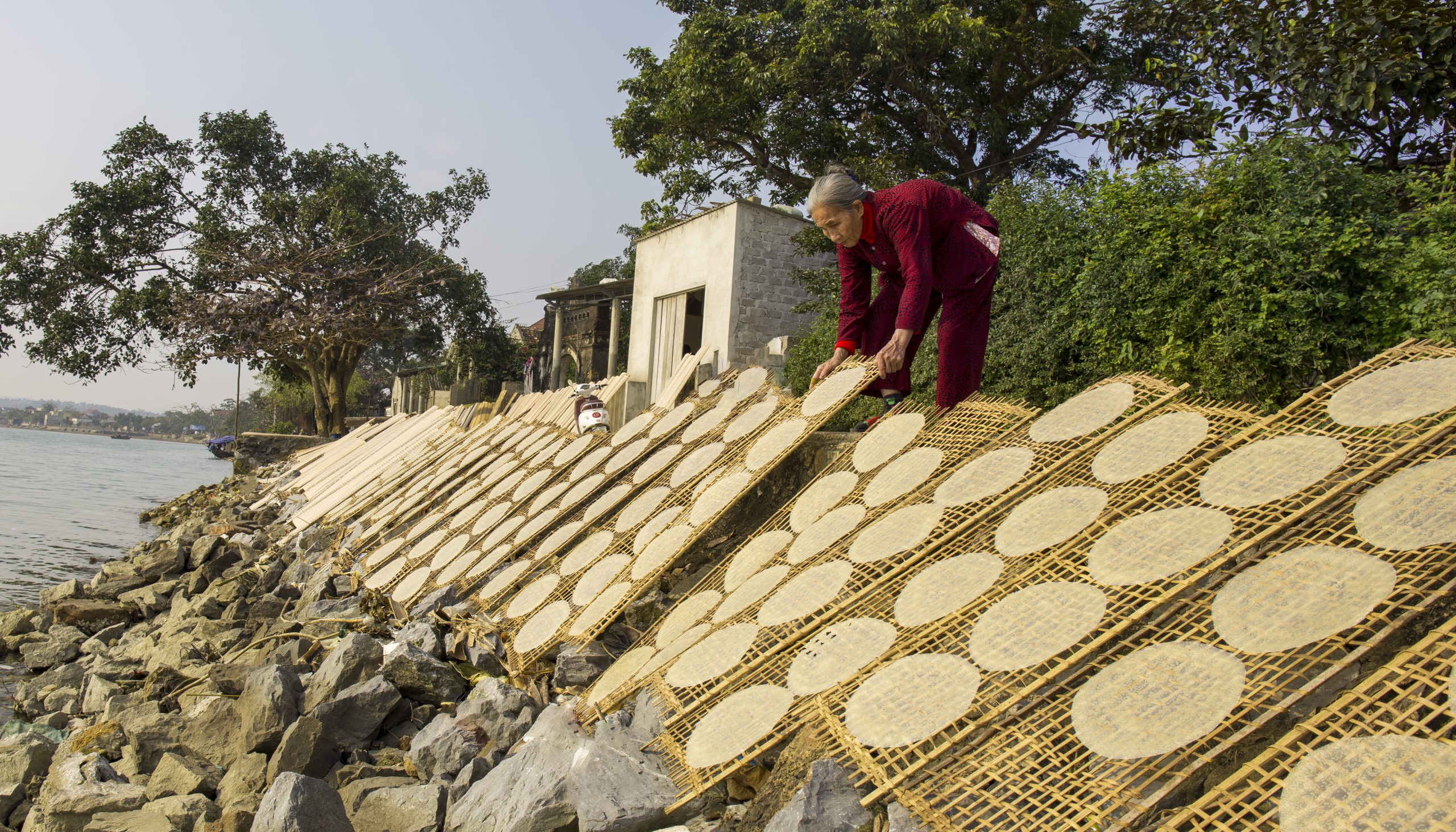 Làng Tân An (xưa có tên là Ba Phường, Lộc Điền hay phường bún bánh) thuộc xã Quảng Thanh, huyện Quảng Trạch vẫn giữ được nét cổ kính, đặc biệt vẫn phát triển nghề truyền thống làm bánh tráng (bánh đa). Bên dòng Gianh hiền hoà, những ngày giáp Tết, ngôi làng như bừng sáng sắc vàng của bánh tráng. Bánh tròn vành vạnh đặt trên những mành tre được phơi trên các mảnh sân, bên những con đường và cả trên các mái nhà. Những chiếc bánh tráng vàng ươm thoảng hương thơm mùi gạo mới. Hàng trăm năm qua, nghề làm bánh tráng đã nuôi sống biết bao thế hệ dân làng. Để tạo nên vị mặn mà đặc trưng, đặc biệt là ở thứ bánh tráng mè (vừng) xát, người làng Tân An đã truyền nhau bí quyết với nhiều công đoạn, đòi hỏi sự khéo léo, tỉ mỉ. Nguyên liệu chính để làm bánh là gạo ngon, được ngâm trong nước và vo kỹ trước khi đem xay nhuyễn thành bột. Chất lượng và vẻ ngoài hấp dẫn của mỗi chiếc bánh mè xát phụ thuộc vào tỷ lệ giữa mè đã xát vỏ, bột gạo và nước. Mỗi chiếc bánh được tráng nguyên vẹn mới chỉ là một nửa công đoạn. Tiếp theo là quá trình phơi bánh. Đủ nắng thì bánh dậy mùi thơm của gạo, mè, đủ khô sẽ có độ dai, còn nếu quá sẽ bị khô giòn, dễ vỡ. Ngược lại, bánh thiếu nắng sẽ mềm, không có mùi thơm và khó bảo quản. Để đa dạng hóa sản phẩm, người Tân An đã tạo ra nhiều loại bánh có mùi vị và hình thức khác nhau. Bánh mè xát mỏng được làm từ hỗn hợp hạt mè giã mịn và bột gạo, tráng thật mỏng, đường kính khoảng 20cm, dùng để làm vỏ ram (bánh đa nem) hay cuốn với rau thơm cùng thịt hấp, cá nướng… Bánh mè xát dày là loại bánh tráng theo kiểu truyền thống, nướng lên có màu nâu nhạt, giòn tan. Bánh mè xát đường, có vị ngọt thanh, thích hợp cho việc ăn vặt. Bánh tráng Tân An được xếp thành chồng, đóng gói mang đi khắp tỉnh và trên cả nước, xuất khẩu ra nước ngoài. Những chiếc bánh mang cả tình yêu, niềm tự hào của người dân quê kết tinh qua hương vị dân dã của gạo, vừng và cả nắng gió Quảng Bình.
