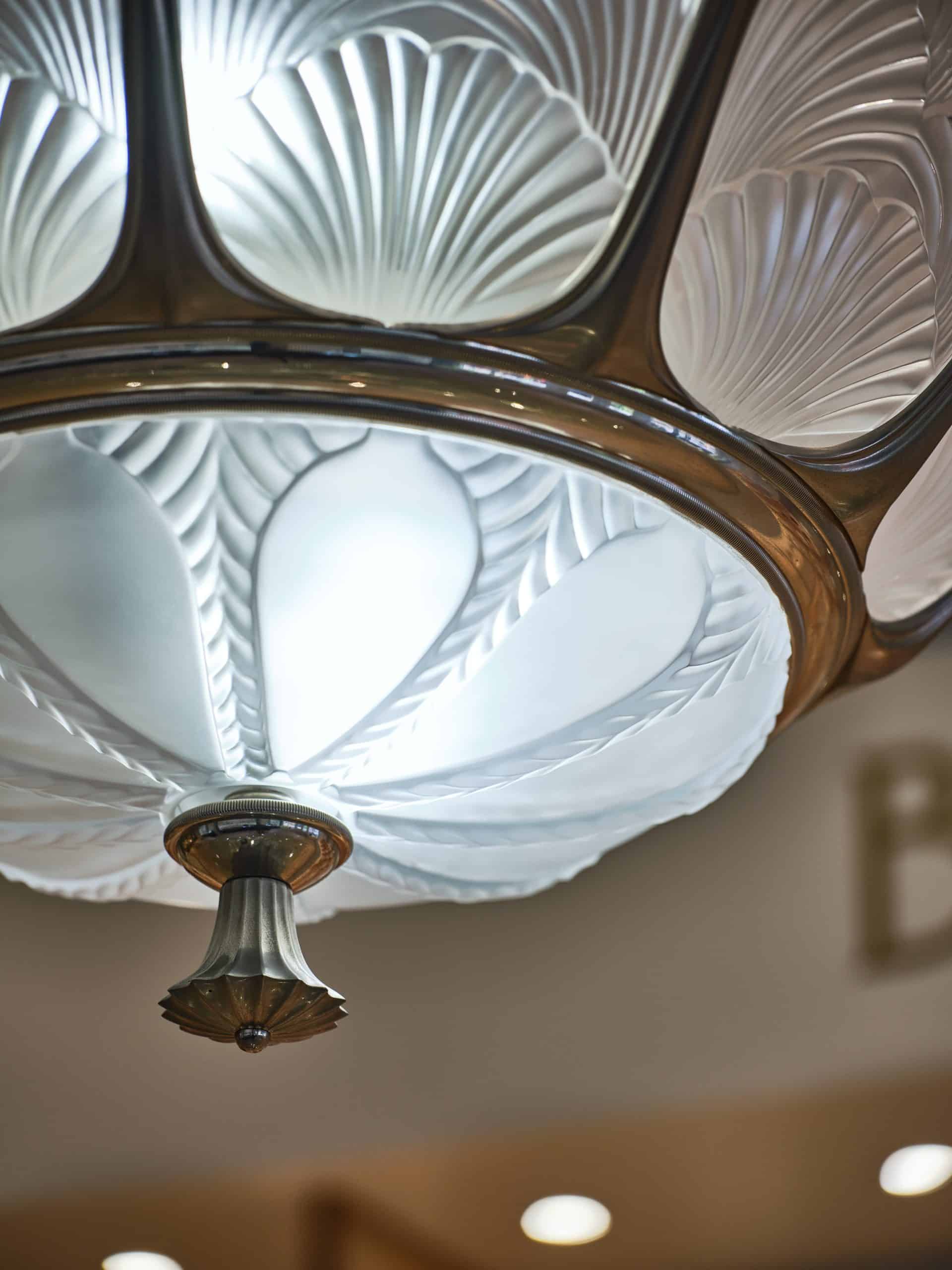 Tuyệt tác đèn chùm pha lê mang phong cách Art Deco, Ginkgo là cái bắt tay đẹp đẽ giữa hai ngôi nhà nghệ thuật Pháp: thiết kế cho khách sạn Liên lục địa (InterContinental) trứ danh từ 1930 của nhà chế tác kim loại Delisle gặp gỡ mô-típ lá ngân hạnh của Lalique.