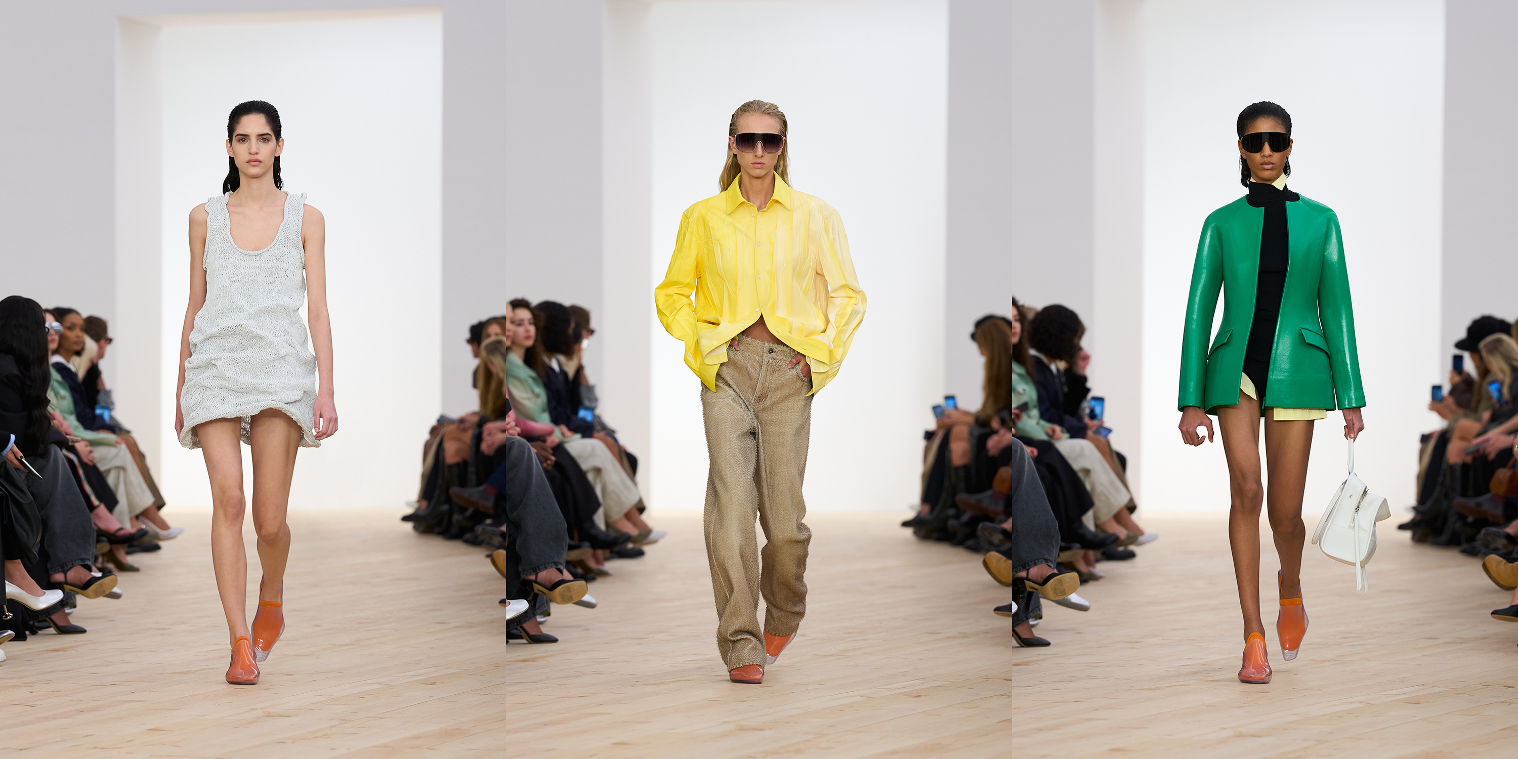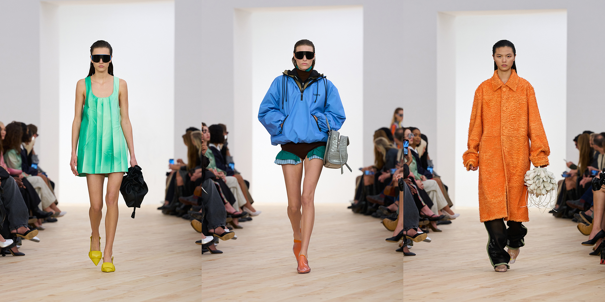 Đáng chú ý, kỹ thuật tạo hình khuôn (moulded constructions) giúp che giấu các đường may, tạo nét cấu trúc điêu khắc cho trang phục, đồng thời tôn vinh đường nét tự nhiên của cơ thể người mặc. Giúp hoàn thiện phần trang phục là những đôi giày thể thao đế bằng và mẫu túi Amazona 180 hoàn toàn mới, thể hiện tinh thần thư thái và hiện đại của LOEWE trong kỷ nguyên sáng tạo mới.