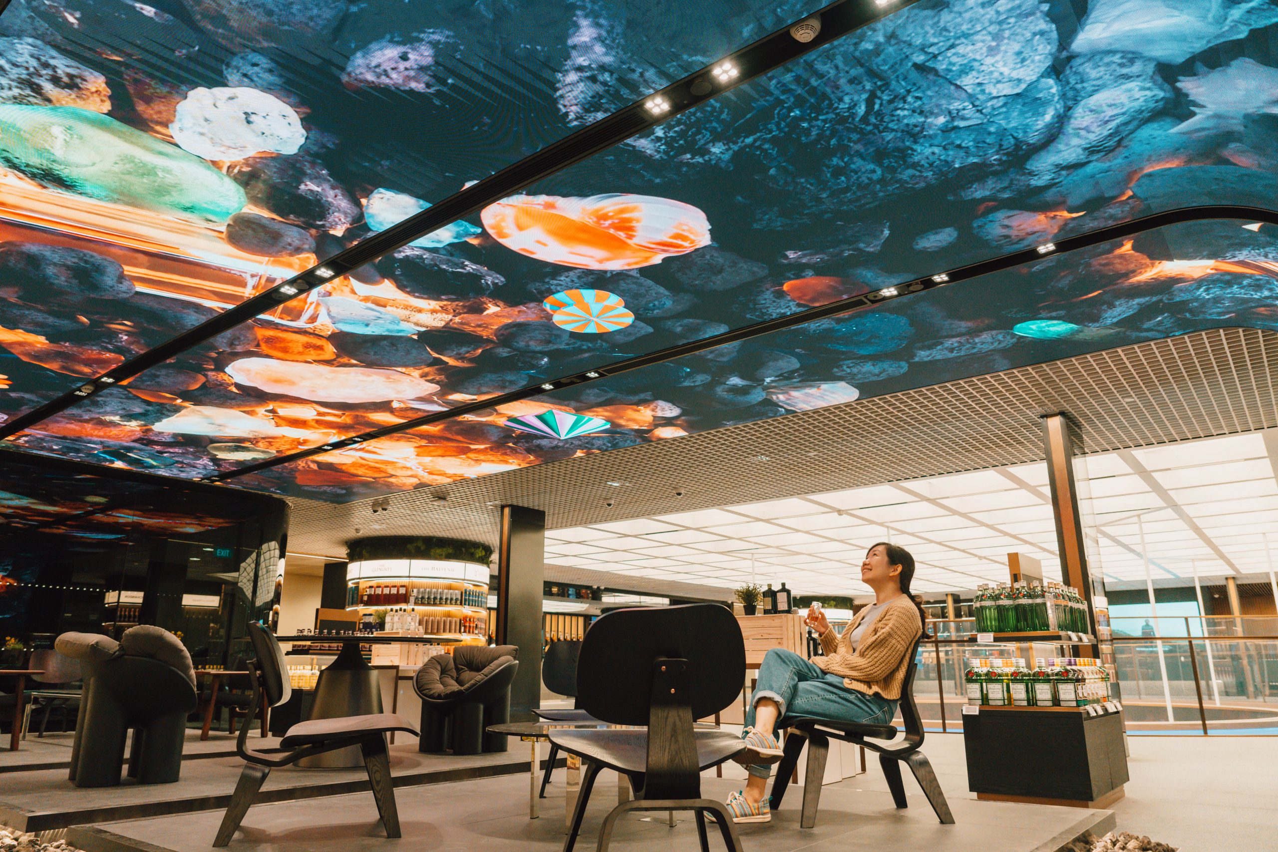 Về mua sắm và bán lẻ, khu mua sắm miễn thuế Lotte Duty Free Wines & Spirits chuyên về các sản phẩm rượu chắc chắn sẽ là địa điểm khai trương mới không thể bỏ qua nếu bạn cần một món quà lưu niệm đủ lịch sự hay để tự thưởng cho bản thân. Điểm đặc biệt của cửa hàng nằm ở quầy bar không người, thay vào đó, khách hàng sẽ được phục vụ bởi hai “nhân viên tự động” là Toni và the Makr Shakr, cũng là người máy bartender đầu tiên được đặt tại sân bay. Tầng trên của cửa hàng là khu vực trưng bày và thưởng rượu, hay còn gọi là ‘Forest of Li Bai’. Tại đây khách có thể tự chọn trong 18 loại whisky để uống thử.