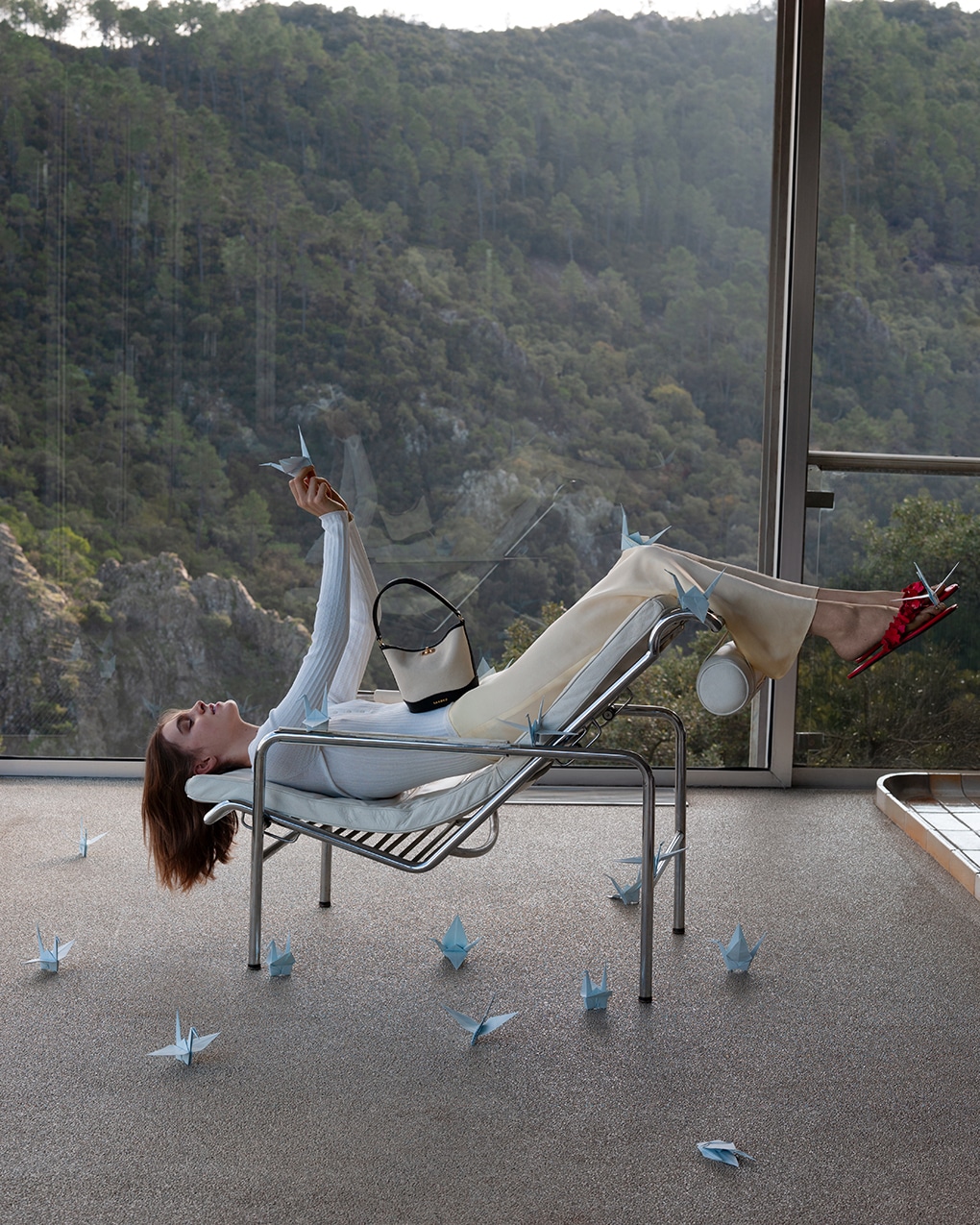 Với BST dành cho nữ mang tên “Chạy tới ánh mặt trời”, Sandro mang đến một hành trình phiêu lưu đầy phóng khoáng, mời gọi phái đẹp tạm gác lại những ồn ào đô thị để hòa mình vào thiên nhiên hoang sơ. Những thiết kế mang âm hưởng của những chuyến đi đến cồn cát sa mạc và bờ biển xanh mát, thể hiện sự tự do và phóng khoáng. Bên cạnh đó, những chi tiết như dây rút và đường may lấy cảm hứng từ cánh buồm, phần đường may trên váy crepe gợi nhớ phong cách thập niên 60 cũng được chăm chút tỉ mỉ, tạo nên điểm nhất cho trang phục.