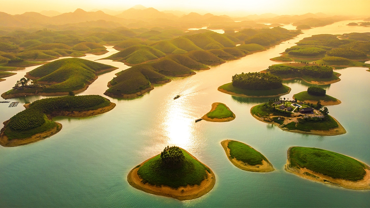 Trong khung cảnh thiên nhiên, mặt hồ nước đầy như tấm gương soi mây trời cây núi, luôn có sức quyến rũ con người bởi lẽ chúng hàm chứa một năng lượng sinh thái to lớn. Mặt hồ trong xanh vừa lạ lùng khi biến ảo theo hình sông dáng núi, vừa thân thuộc với người Việt vốn gắn bó với sông nước trên khắp miền. Phiêu du trên mặt nước đầy, giữa non xanh gió mát, lữ khách dường như được ôm trọn vẹn trong vòng tay thần thoại của thiên nhiên được tạo lập từ hàng vạn bàn tay nhiều thế hệ.