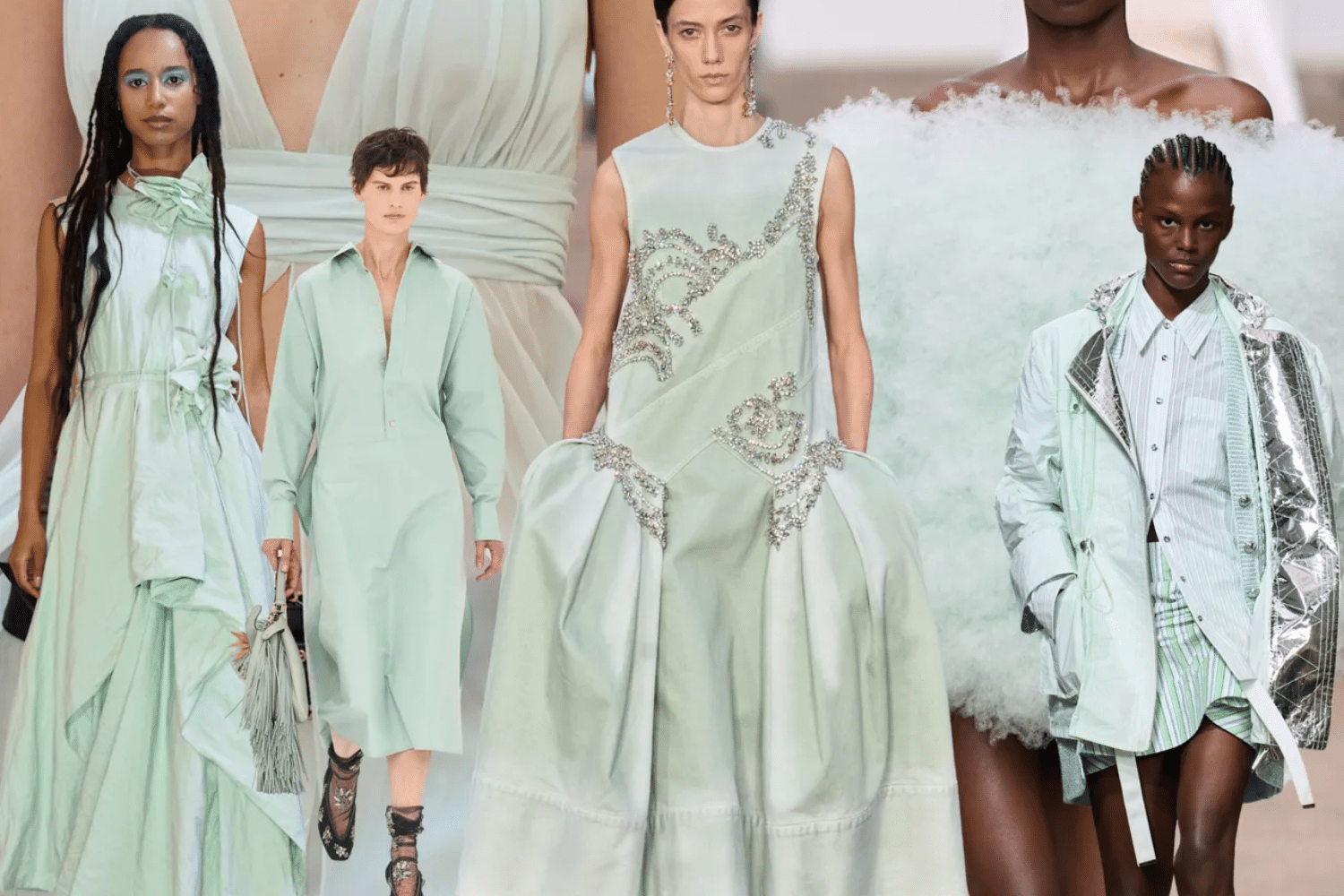 Xanh biển nhạt, hay còn gọi là seafoam green, là một trong những gam màu nhẹ nhàng nhưng đầy cuốn hút trong năm 2025. Tông màu này mang đến sự thanh thoát, dịu dàng và rất dễ chịu cho người mặc. Màu xanh này đặc biệt phù hợp cho những ai yêu thích phong cách trang nhã nhưng không kém phần thời thượng.