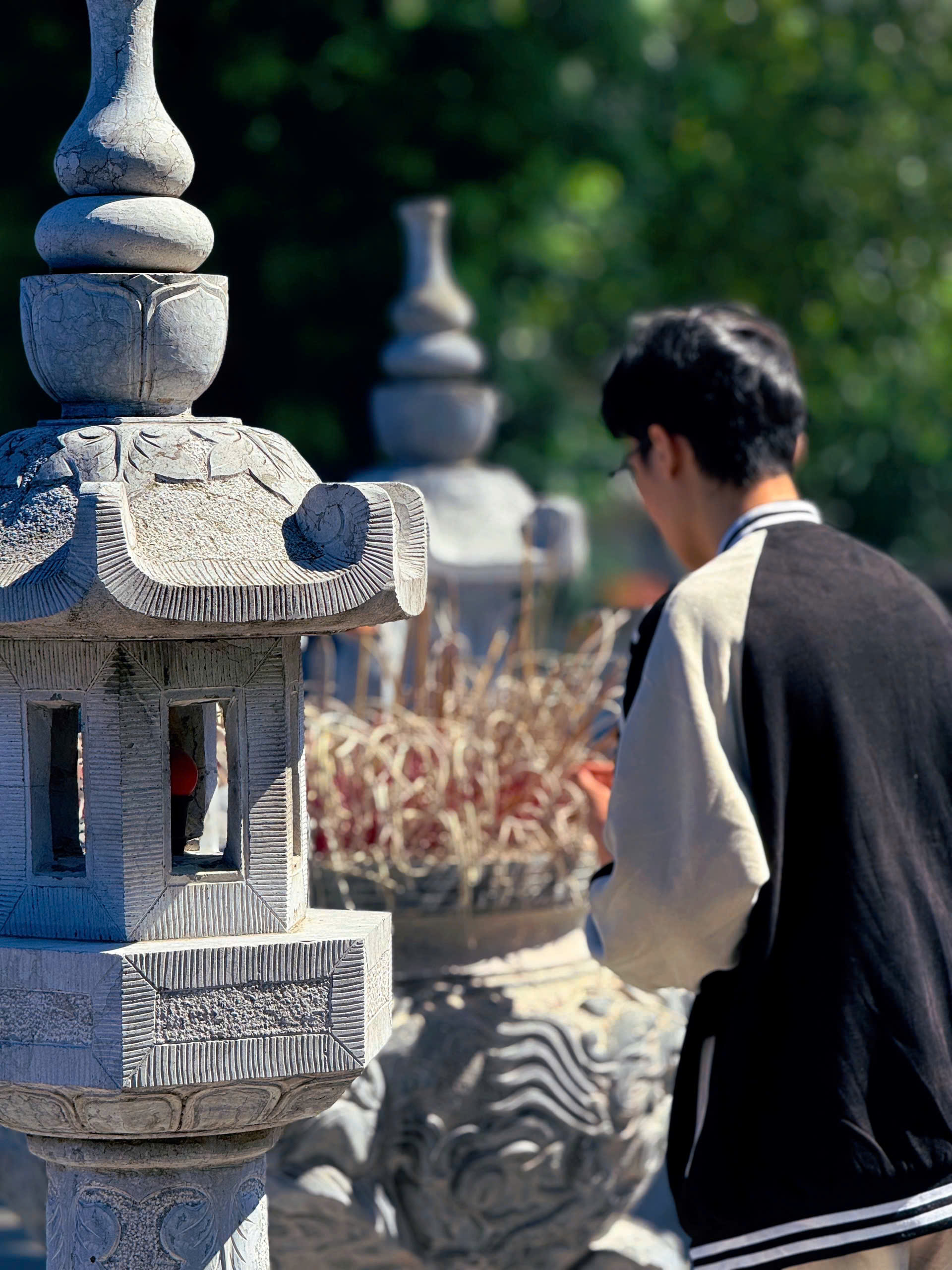 Mỗi ngày, hàng nghìn bước chân đi qua; có người vội vàng đến lớp, có người dừng lại đôi phút nơi cửa chùa. Có những bàn chân son trẻ thắp nén hương cầu may trước kỳ thi, gửi gắm chút lo âu tuổi hai mươi vào làn khói mong manh. Có ánh mắt còn rụt rè nhìn tượng Phật, rồi dần sáng lên niềm tin rằng phía trước vẫn còn một chỗ dựa bình yên. Và cũng có những giọt nước mắt kín đáo rơi xuống, khi một trái tim xa quê bất chợt nhớ về cha mẹ, nhớ những điều sâu xa chẳng biết ngỏ cùng ai. Chùa không chỉ lắng nghe, mà còn âm thầm che chở, nâng niu những mảnh tâm hồn bé nhỏ.
