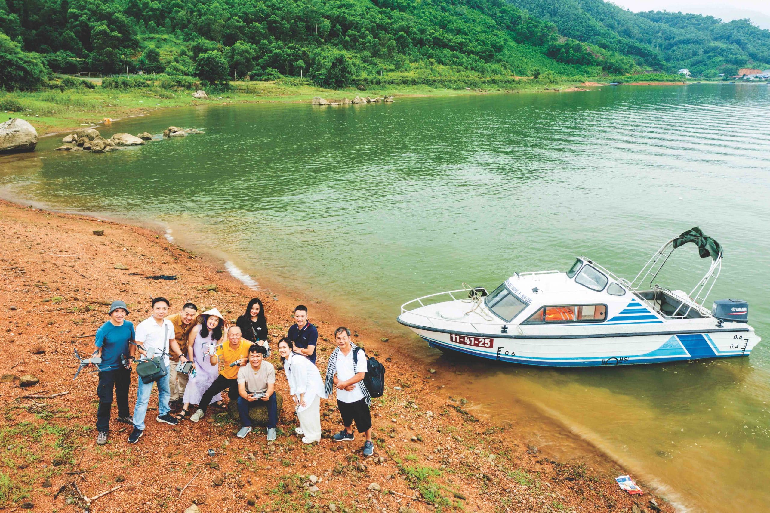 Vẫn là những cơn mưa được dự báo làm chúng tôi lo lắng trên hành trình sáng tác ở những điểm trải nghiệm ngoài trời. May sao, ngày thứ 2 bắt đầu với những khoảnh khắc trong trẻo của ngày mới trên hồ Núi Cốc. Một vùng sông nước mênh mang, núi non thấp thoáng phía xa đã mang lại biết bao shot ảnh trữ tình về huyền thoại hồ nước xanh bao la này. Câu hát còn ngân nga khi được ngắm lại thành quả sáng tác của các nhiếp ảnh gia buổi tinh mơ hôm ấy: