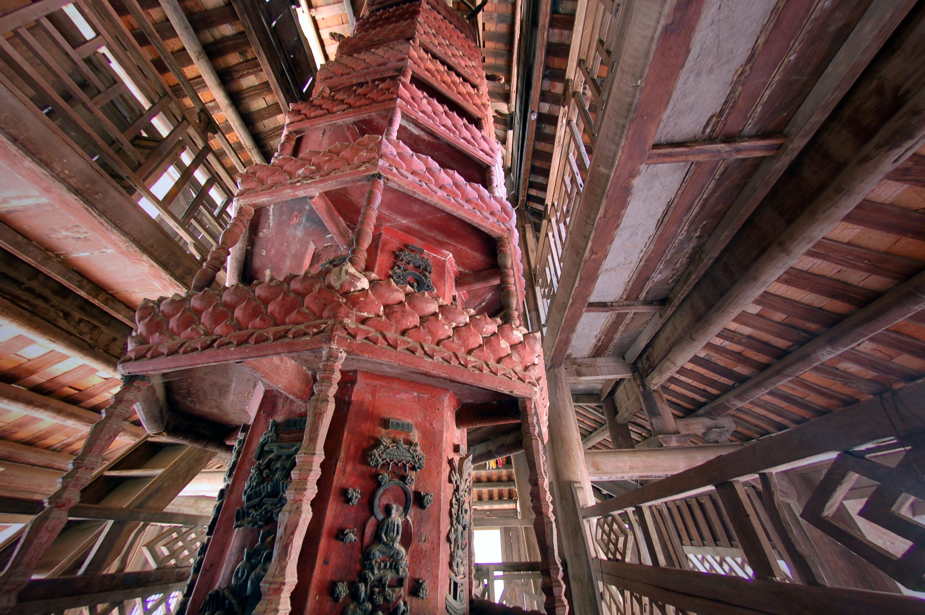 Tháp Cửu phẩm liên hoa sừng sững uy nghiêm trở thành biểu tượng tâm linh của Phật giáo, tuy không phổ biến như tượng Phật A-Di-Đà hay tượng Quan thế âm bồ tát, song chỉ có những ngôi chùa có bề dày lịch sử và được các thiền sư danh tiếng trụ trì mới xây dựng được tháp. Cũng nhờ sự uyên thâm của các cao tăng mà một hình thức mới của tháp ra đời, tháp cửu phẩm liên hoa xoay, gọi một cách nôm na là “Cối xay kinh”. Về hình thức, tháp vẫn tuân thủ các nguyên tắc chung, điểm đặc biệt là tháp được làm bằng gỗ, cao 8 – 9m, đặt trong các nhà phẩm có kiến trúc truyền thống có 2 đến 3 lớp mái với đầu đao cong vút. Chân tháp không chôn cứng với nền mà được đặt trong một cối đồng giúp tháp có thể quay được. Do được làm bằng chất liệu gỗ, nên tháp được những người thợ thủ công trang trí rất công phu, trau chuốt. Trên thân tháp được trang trí bằng những bức phù điêu mô tả các tích Phật. Các tay đòn đỡ các tầng tháp được trạm trổ cách điệu thành hình rồng. Mỗi tầng tháp được tạc thành một đài sen, trên mỗi cánh sen lại được gắn một hoặc nhiều các tượng phật, tượng Quan Âm hoặc các La Hán. Mỗi bức tượng là một tác phẩm điêu khắc sống động, tòa phẩm ở chùa Đồng Ngọ có đến 162 pho tượng. Điều đặc biệt hơn cả để “cối xay kinh” trở thành bảo bối của ngôi chùa nằm ở công năng của tòa phẩm. Từ chỗ chỉ là một biểu tượng, nay “cối xay kinh” trở thành một công cụ hỗ trợ tu hành. Các phật tử tin rằng những lời cầu nguyện, niệm Phật cùng với việc quay cối kinh sẽ tạo tương hỗ cho nhau. Cứ quay một vòng cối kinh thì mỗi câu niệm Phật sẽ được nâng lên thành 3.542 nghìn câu niệm. Hay một người khi sống làm những việc không lương thiện, nhưng không phạm vào ngũ nghịch, lúc sắp lâm chung mà tâm hướng tới thế giới Tây phương cực lạc, miệng niệm Di Đà lại được nhà sư cùng người thân niệm 10 câu “nam mô A Di Đà Phật” quanh tòa cối kinh đang xoay, thì linh hồn người chết sẽ không bị đọa xuống địa ngục. Quả là một công cụ thần diệu, hữu dụng trong đời sống tâm linh.