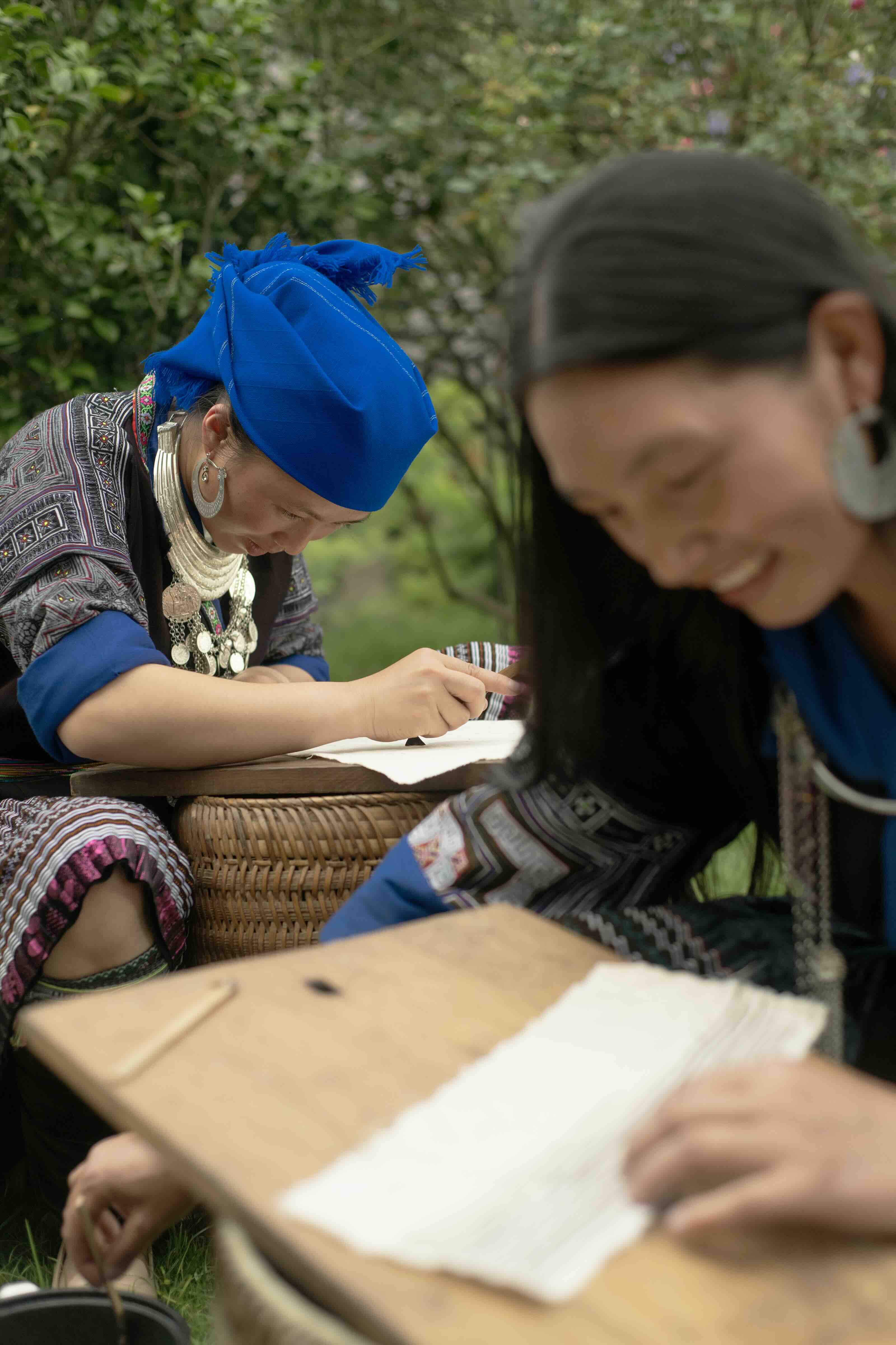 Nghệ nhân địa phương vẽ sáp ong trên vải