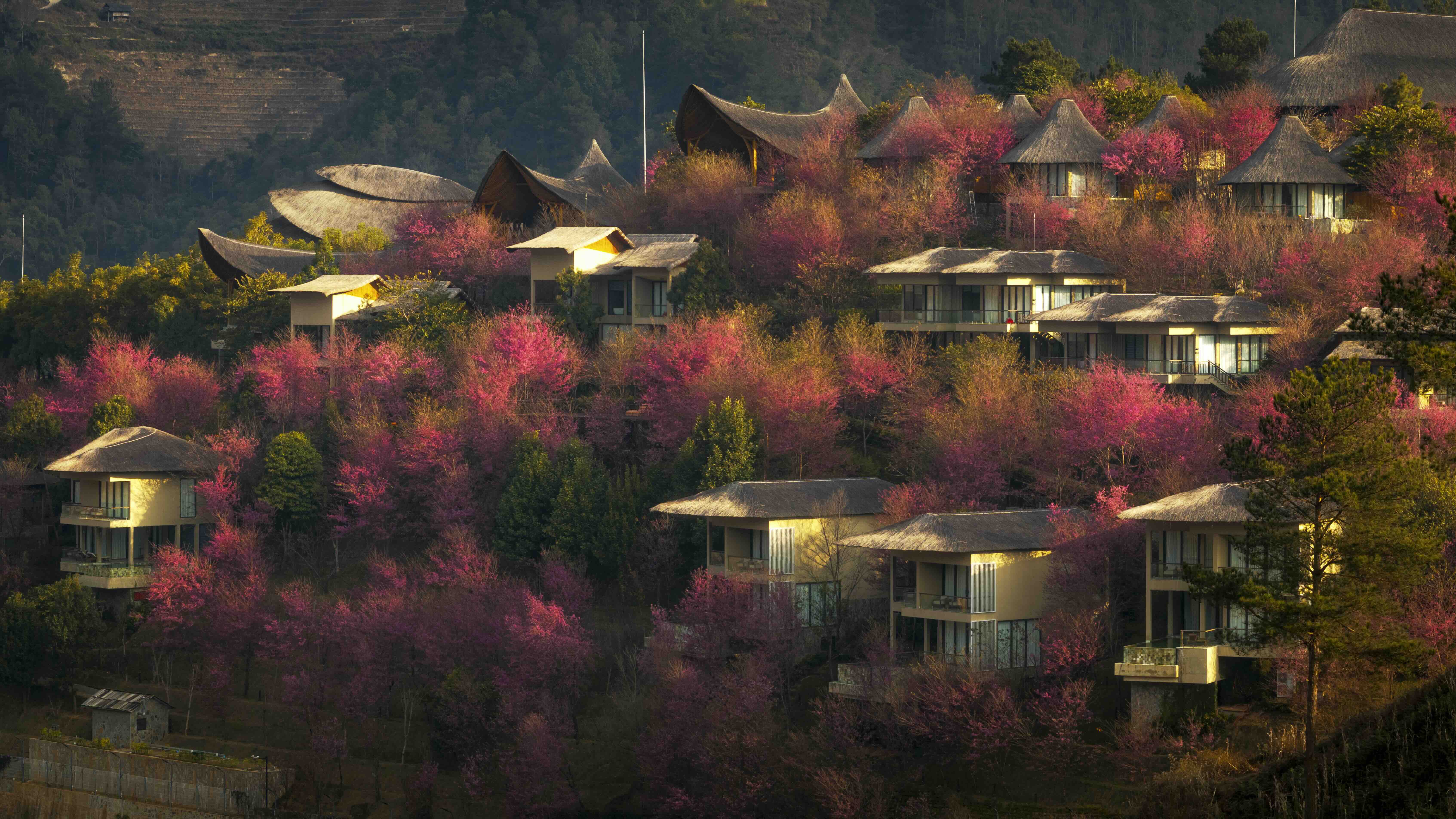 Trên nền khúc ca du dương ấy, Garrya Mù Cang Chải như hòa cùng thiên nhiên, tĩnh lặng mà căng tràn sinh khí. Khu nghỉ dưỡng làm từ tre có quy mô lớn và độc đáo bậc nhất Việt Nam, ẩn mình tinh tế theo đường cong của ruộng bậc thang, từng đường nét như tiếp lời của cây núi. Mỗi chi tiết đều phảng phất hơi thở bản địa, mái vòm gợn sóng như mây lượn, sắc thổ cẩm điểm tô không gian, và đặc biệt là những “khoảng nghỉ” an tĩnh – nơi tái tạo sức lực cho thân – tâm con người.