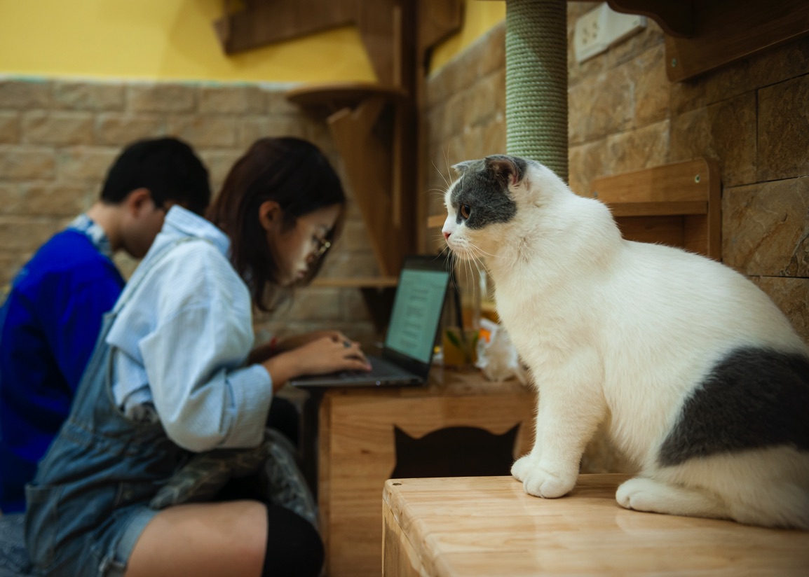 Bên cạnh các tiện ích cho mèo như dịch vụ bệnh viện thú y, các cửa hàng đồ ăn và đồ chơi, các spa chăm sóc cắt tỉa lông hay làm đẹp, những quán cà phê lại là nơi chính chủ nhân của chúng có thể thư giãn với thú cưng. Những quán cà phê mèo có một sự đặc biệt ở chỗ, mèo là giống loài không dễ dàng tương tác với những loài khác, vì thế đại bộ phận những quán cà phê cho loài bốn chân đặc thù này sẽ “chọn lọc” hơn những nơi các bạn thú cưng khác như chó hay chim cảnh được chủ mang tới.