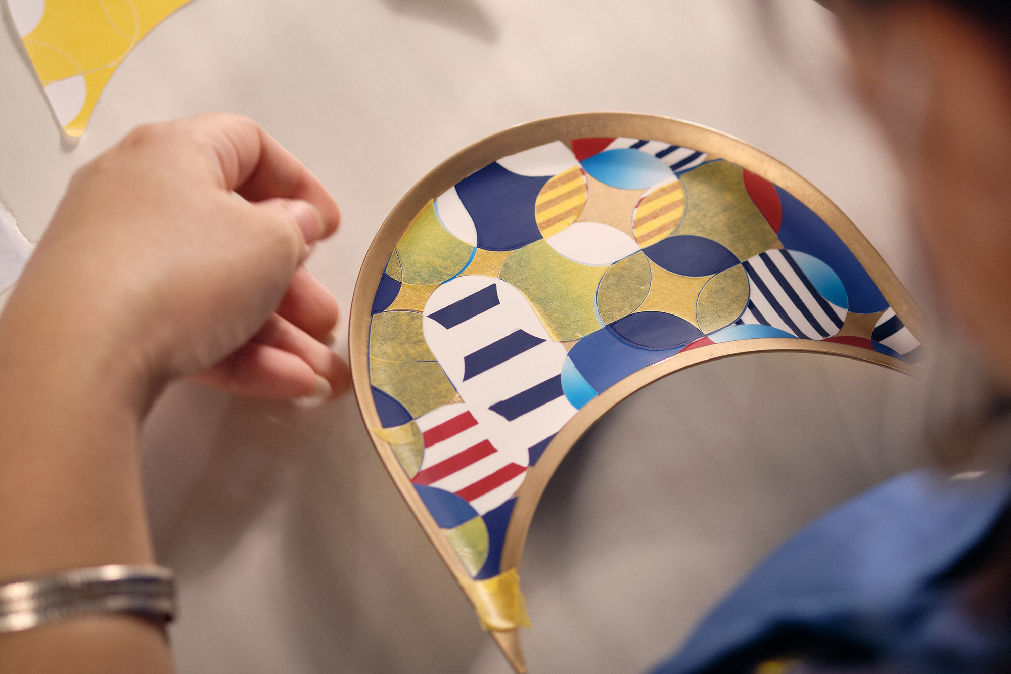 Trong khi đó, phiên bản Deep Forest lại tôn vinh kỹ nghệ sơn mài cùng kỹ thuật dán lá vàng phức tạp. Theo đại diện Hanoia, nghệ nhân đã sử dụng 4 loại lá vàng khác nhau, mỗi loại mang sắc độ riêng, và việc dán lá trên bề mặt kim loại nhỏ đòi hỏi sự tính toán tỉ mỉ và tay nghề cao.