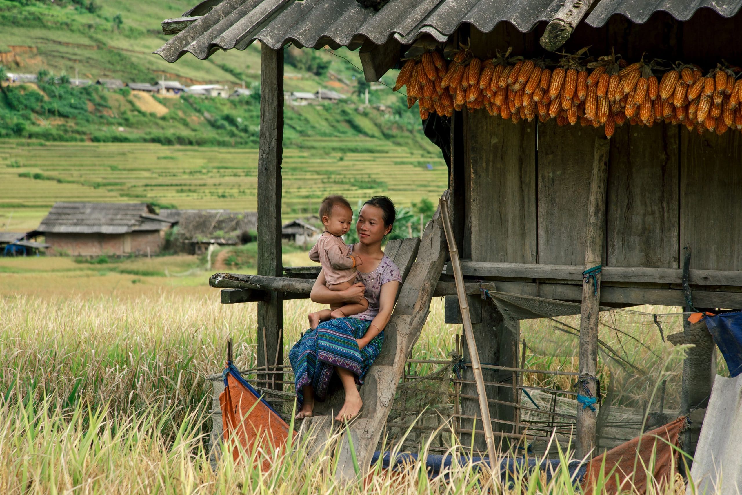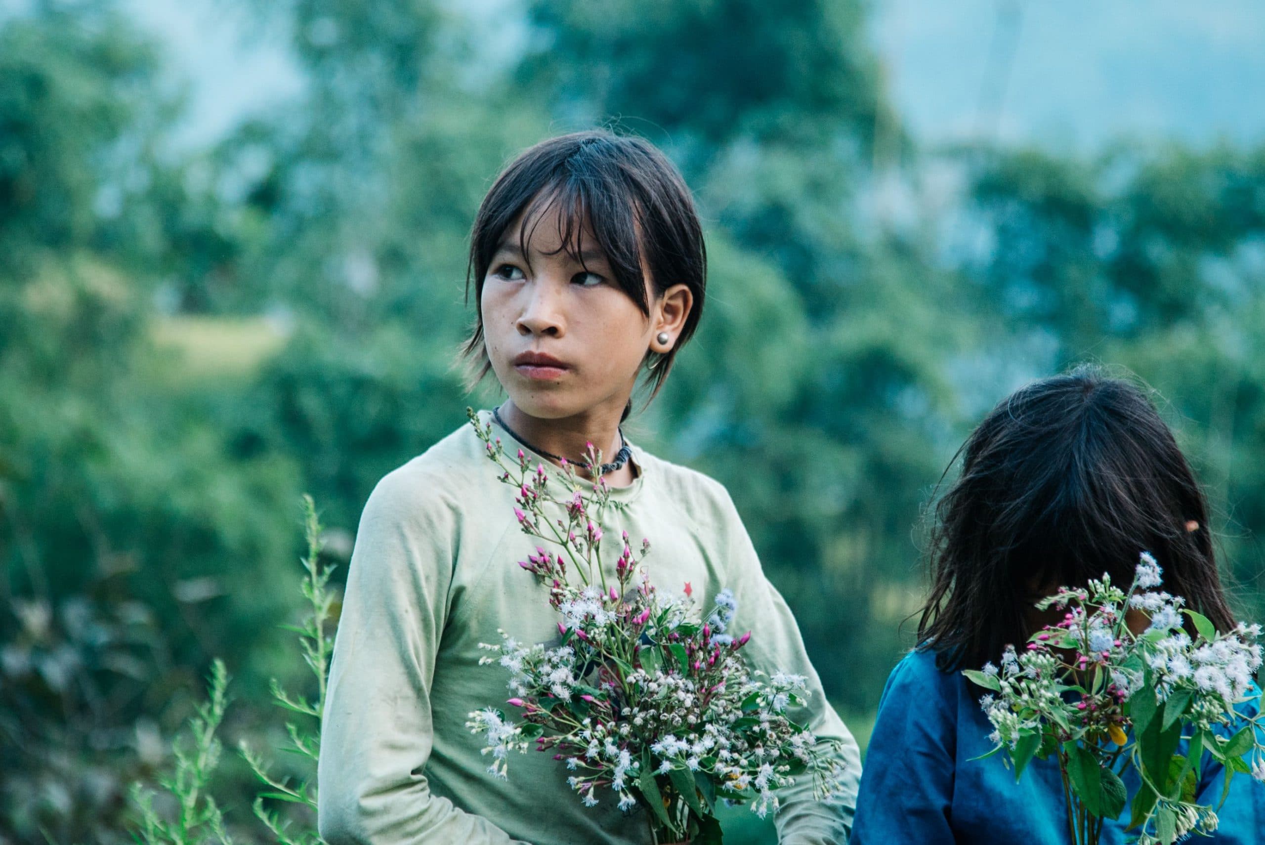 Chia tay Si Ma Cai, cả nhóm lại tiếp tục lang thang Hoàng Su Phì và chọn điểm nghỉ chân ở Bản Phùng trong cái nắng chào đón rực rỡ nhất của ngày. Cũng là ruộng bậc thang và những nếp nhà gỗ nhưng chúng tôi lại thấy hoàn toàn mới mẻ khi lạc vào bức tranh Bản Phùng. Những đứa trẻ La Chí đang hái hoa dọc bờ đó, chúng bẽn lẽn và sống động, miệng tủm tỉm như những đóa cúc dại trên tay.