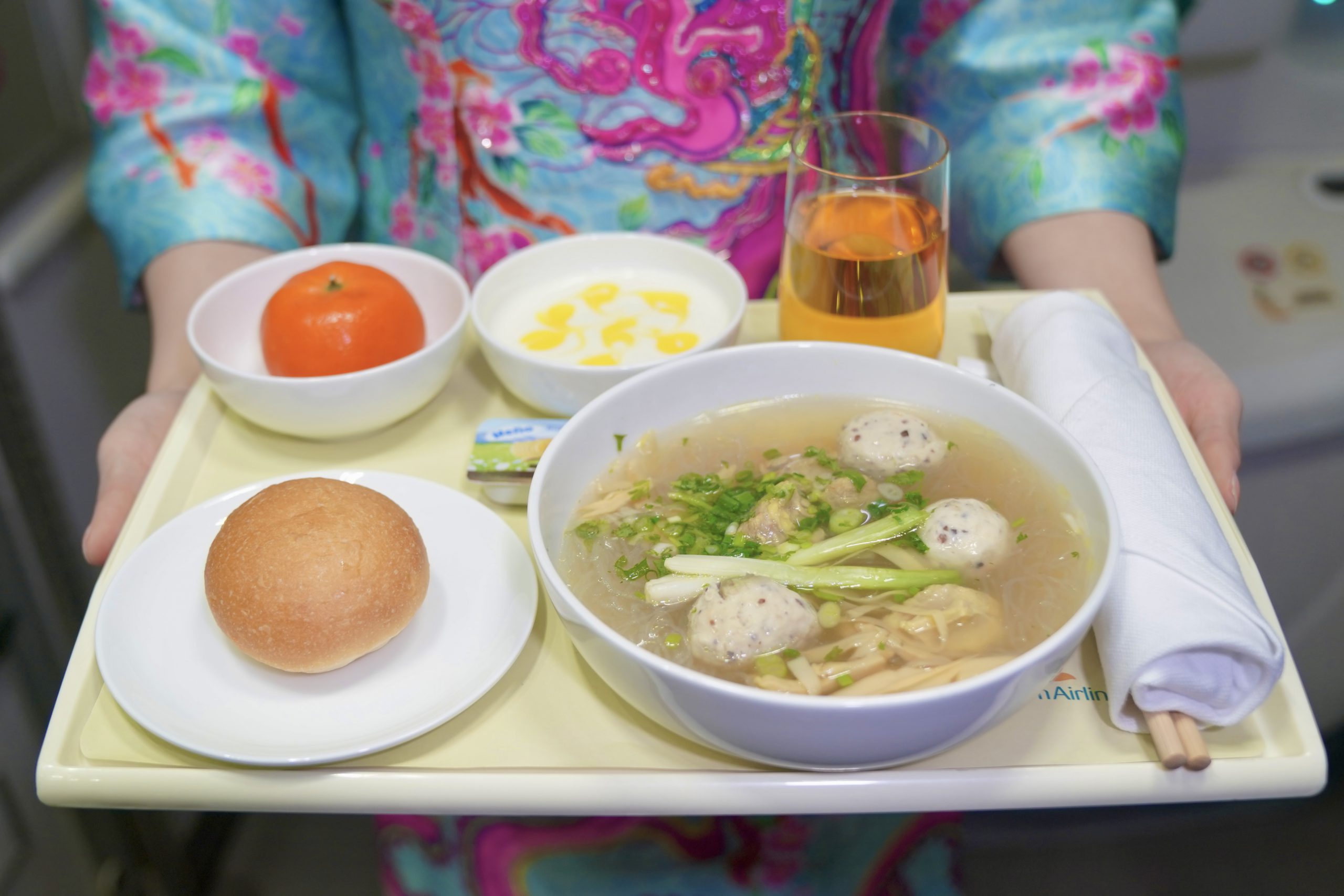 Vietnam Airlines mang hương vị Tết đến gần hơn với mỗi thực khách thông qua những món ăn mang đậm hương vị cổ truyền như: bánh chưng, xôi gấc, thịt đông, hành muối, chả quế, giò xào, dưa góp,… Mỗi món ăn đều được các đầu bếp của Vietnam Airlines trình bày đẹp mắt, tạo nên một bữa tiệc ẩm thực khó quên trên những tầng mây.