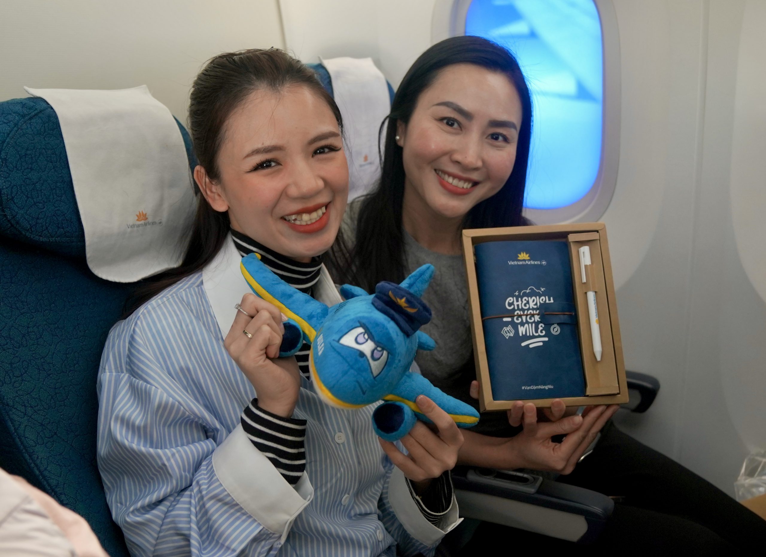Vietnam Airlines cũng dành tặng hành khách những món quà ý nghĩa như sổ tay và mascot của Hãng
