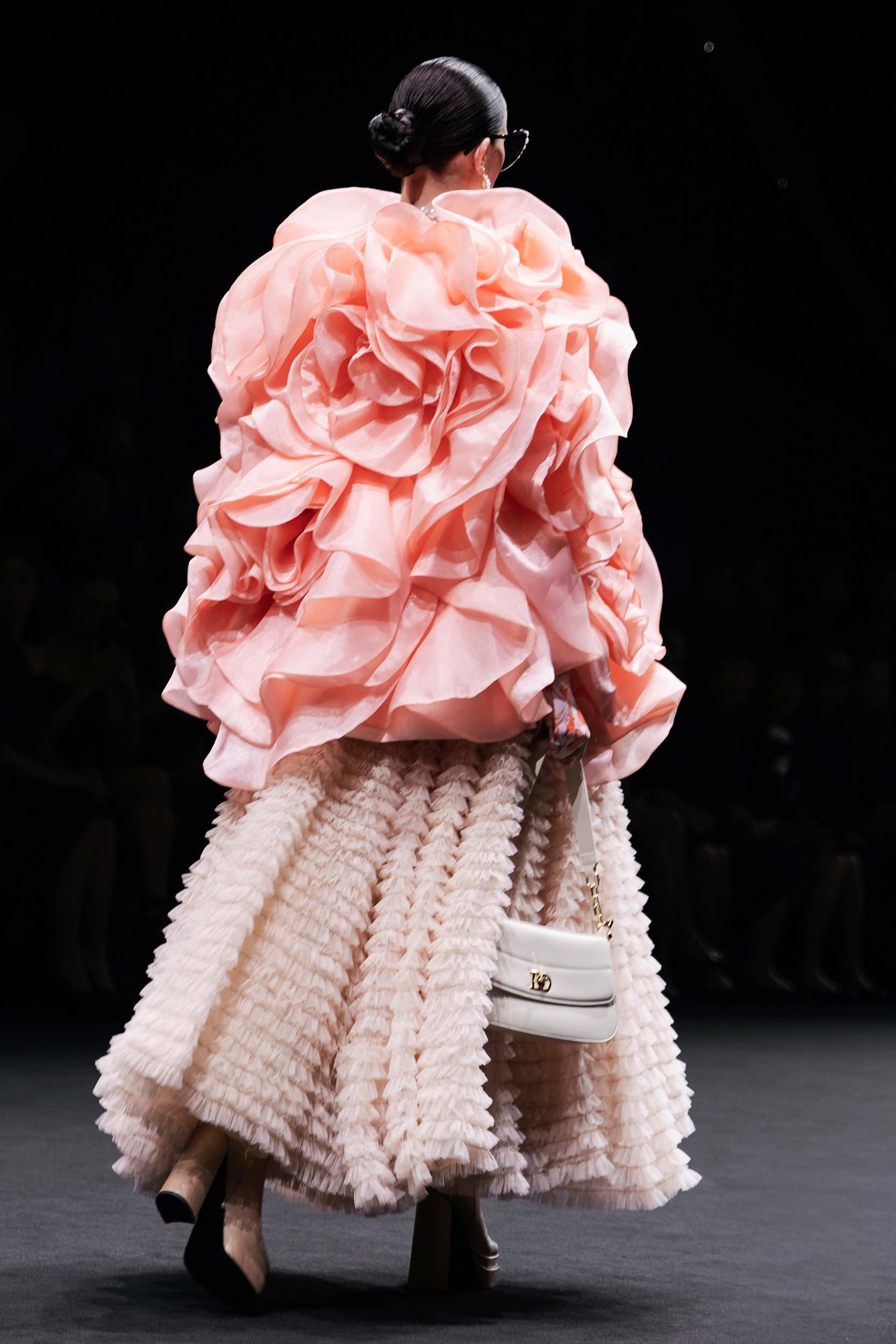Sàn diễn được bố trí theo phong cách tối giản, để trang phục được tôn vinh tối đa. Show diễn kéo dài khoảng 30 phút với 66 thiết kế mới, dành cho những cô gái yêu thích chủ nghĩa tối đa (maximalism) trong thời trang. Nếu chủ nghĩa tối thiểu (minimalism) hướng đến sự tinh giản hết mức có thể, thì minimalist ưu tiên kết hợp màu sắc táo bạo, phối các loại họa tiết dày đặc, những hình khối cỡ đại, hướng đến sự “phô trương” để gây ấn tượng. Con đường ra quốc tế cũng là cơ hội để NTK khai phá những sáng tạo mới mẻ trong chính mình.