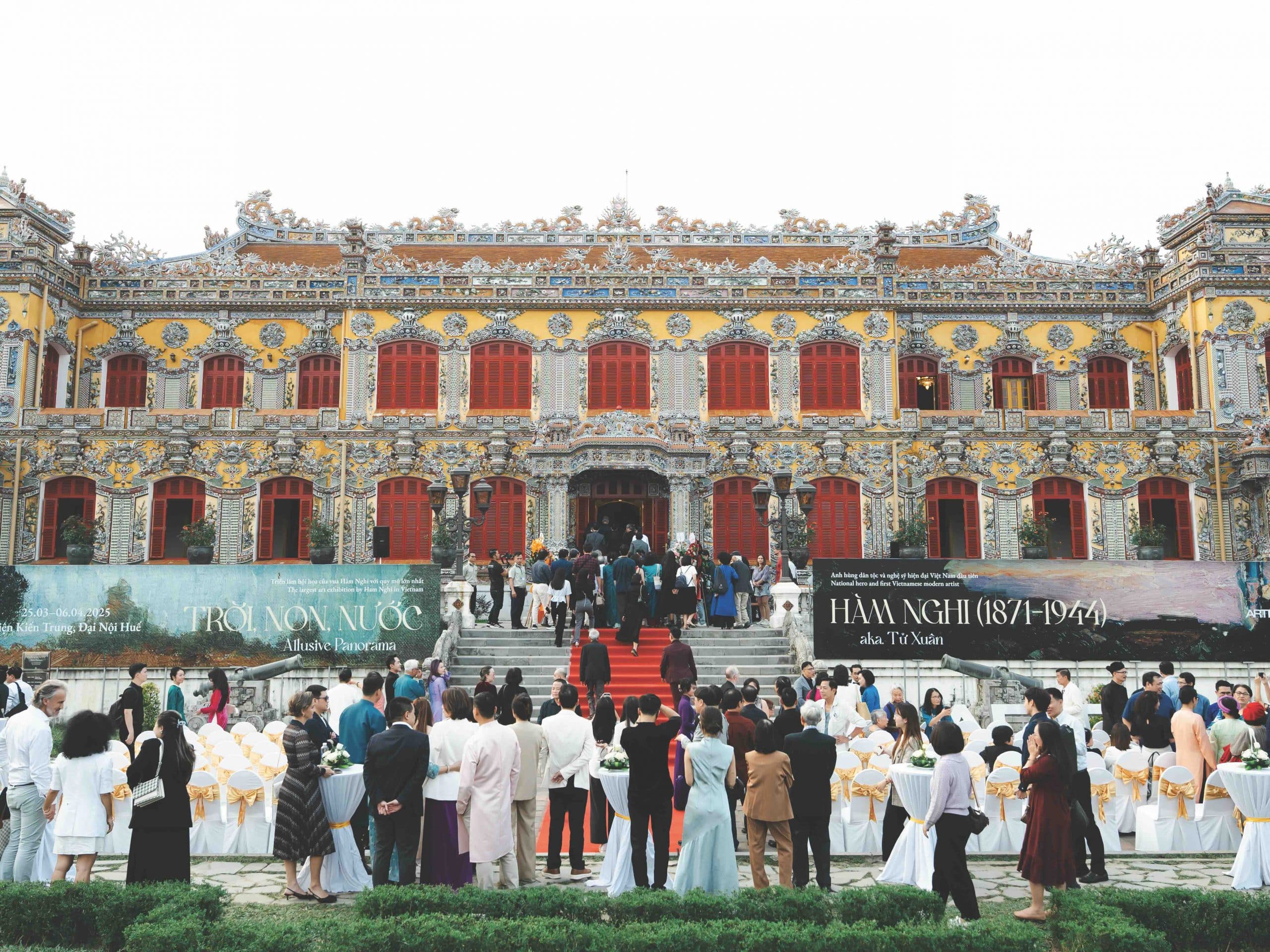 Điều này là đương nhiên. Bản thân Điện Kiến Trung không phải được xây với mục đích làm không gian triển lãm, nên chúng tôi đã phải hoạch định kỹ càng để đảm bảo được tính an toàn cho tranh, cân đối độ khả thi cho vận hành và ngân sách dự án. Rất nhiều khâu bắt buộc phải đầu tư: nhân sự có chuyên môn để đóng gói và lắp đặt tranh, xe lạnh để vận chuyển tranh, hệ thống điều hòa để bảo quản tranh khi trưng bày, hay CCTV để theo dõi không gian triển lãm 24/7. Đây cũng là triển lãm thu hút nhiều khán giả kỷ lục trong sự nghiệp của tôi, nên những bước hoạch định phân luồng và quản lý giao thông phải được triển khai kỹ càng. Nếu không có sự hợp tác linh hoạt từ Trung tâm Bảo tồn Di tích Cố đô Huế cùng tất cả các đối tác sản xuất, thì dự án chắc chắn đã không được diễn ra tốt đẹp.