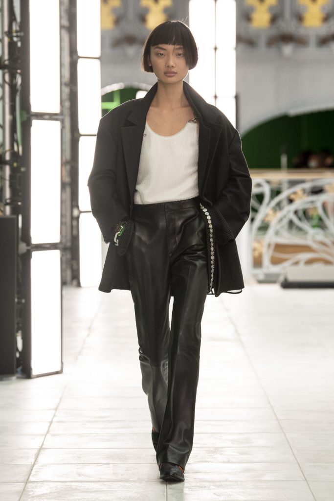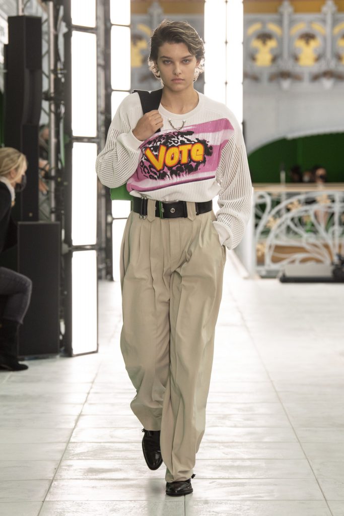 Với Louis Vuitton, các thiết kế Xuân/Hè 2021 vẫn khai thác những phom dáng cấu trúc vô cùng mạnh mẽ và cá tính, vốn là dấu ấn đặc trưng của NTK Nicolas Ghesquière – vị Giám đốc Nghệ thuật tài năng của dòng sản phẩm dành cho phái đẹp. Lần này, ông vẫn nhấn mạnh vào phần vai áo nhưng có phần thoải mái hơn, phóng khoáng hơn với tinh thần tự do tự tại mà vẫn luôn làm chủ trong mọi tình huống. Những đôi giày với thiết kế độc đáo tạo nên nét chấm phá đặc sắc cho tổng thể BST, mang đến những lựa chọn mới (hay là những thử thách mới dành cho những ai thích khám phá điều mới mẻ.