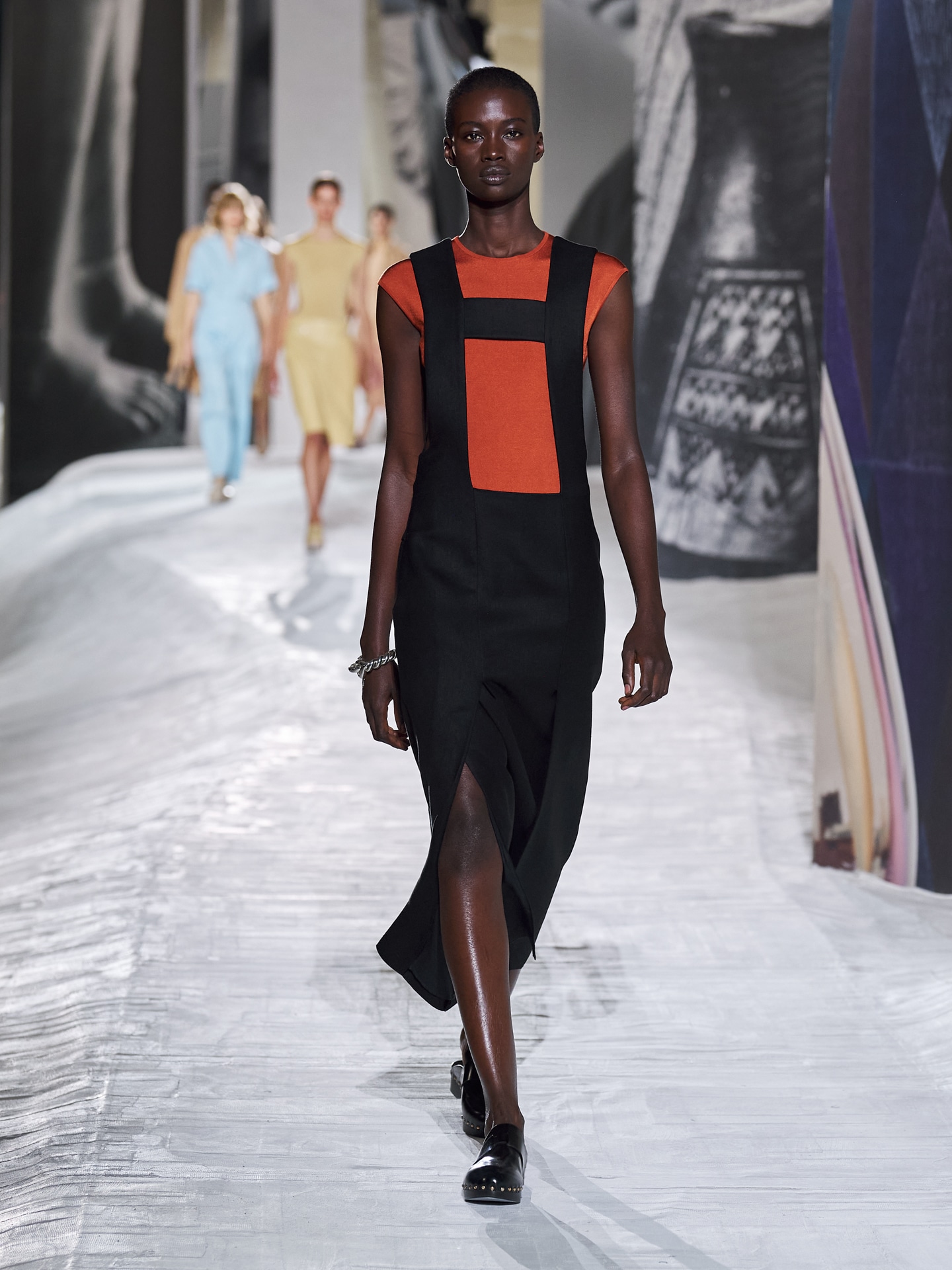 Hermès lại vẽ lên hình ảnh người phụ nữ đầy xúc cảm cho mùa Xuân/Hè 2021. Các thiết kế dưới sự chỉ đạo của NTK Nadège Vanhee-Cybulski hiện lên thật gợi cảm mà cũng vô cùng tinh tế. Phom dáng ôm cùng các chi tiết cắt khoét có phần táo bạo làm nên một làn da thứ hai cho người phụ nữ, tôn lên vẻ đẹp hình thể mà đấng tạo hóa đã ban tặng cho một nửa thế giới. Và đâu đó có sự kết hợp giữa lớp vải co dãn cùng lớp bên ngoài bằng sừng được chế tác thủ công vô cùng khéo léo làm nên sự đối lập thú vị, một “món ăn” lạ miệng cho bữa tiệc thị giác vô cùng thịnh soạn.