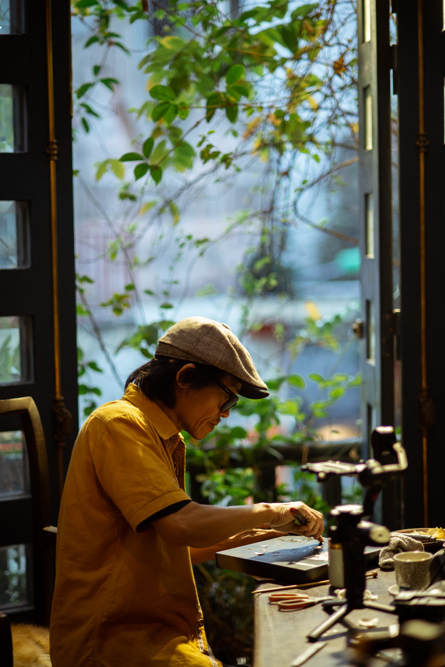 Born and raised in Hanoi, the artist Trinh Tuan lived through the hardships of the subsidized era. As a result, memories of Hanoi became deeply ingrained in his works. His lacquer paintings mainly depict fragments of memories of Hanoi, from street corners and courtyards to changing scenes of Hoan Kiem Lake through the four seasons. Over the last 30 years, Mr. Tuan has persistently woven these memories into his artworks.