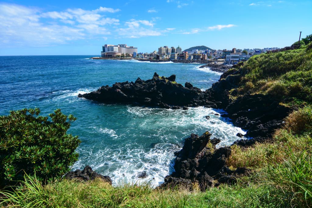 Jeju has outstanding coastal scenery with volcanic cliffs weathered for millennia. Along the southern coast, tranquil beaches rim clear blue bays that shine beneath the summer sun. Sometimes, it is quite cool. One of the natural wonders of Jeju is the dormant volcano of Mount Hallasan and its namesake national park. Mount Hallasan stands 1,950 m high.