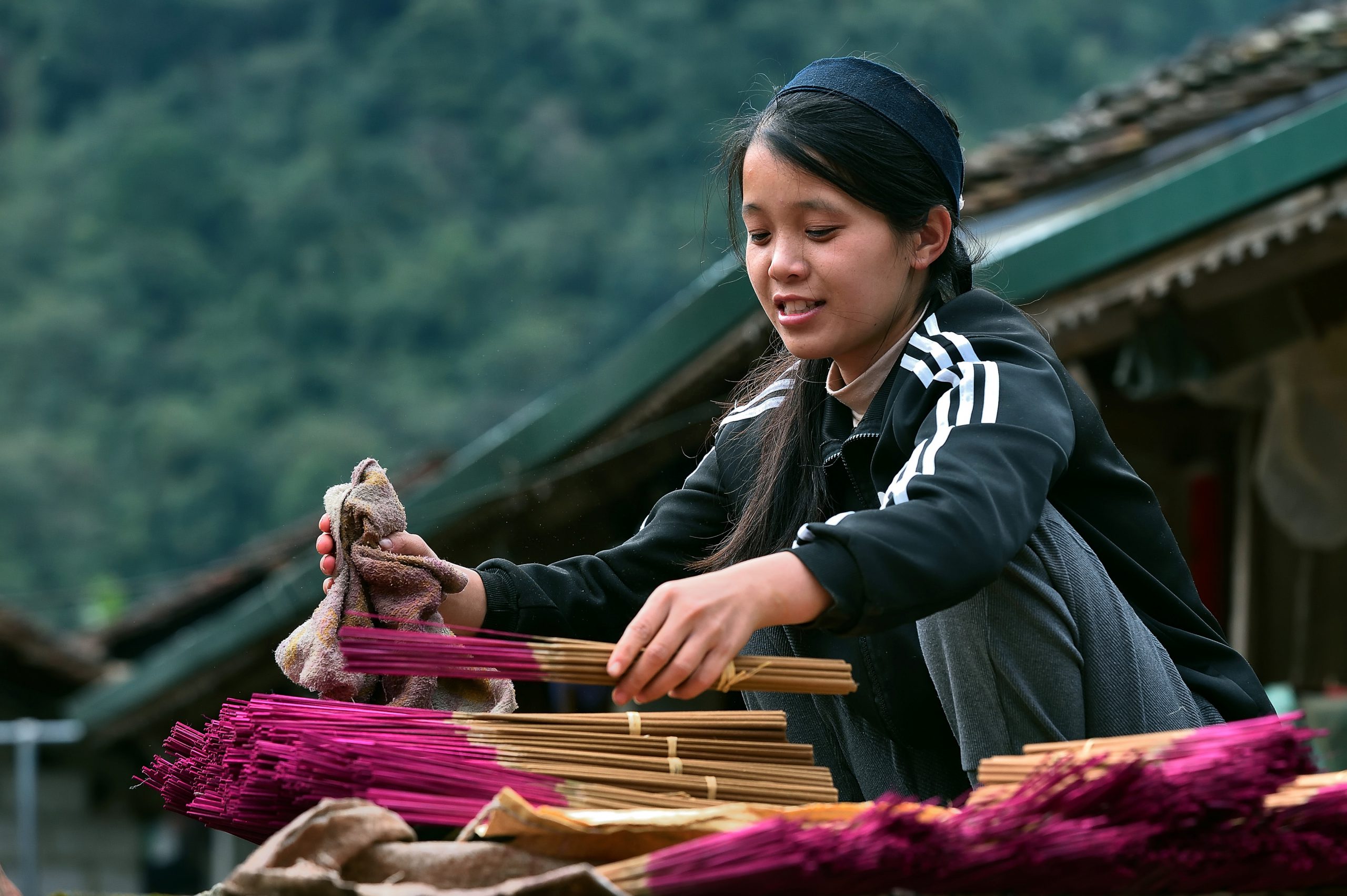During the months leading up to Tet, villagers in Phia Thap get busier, especially the ethnic Nung people. Everyone from children to adults to elders participates in the incense-making process.