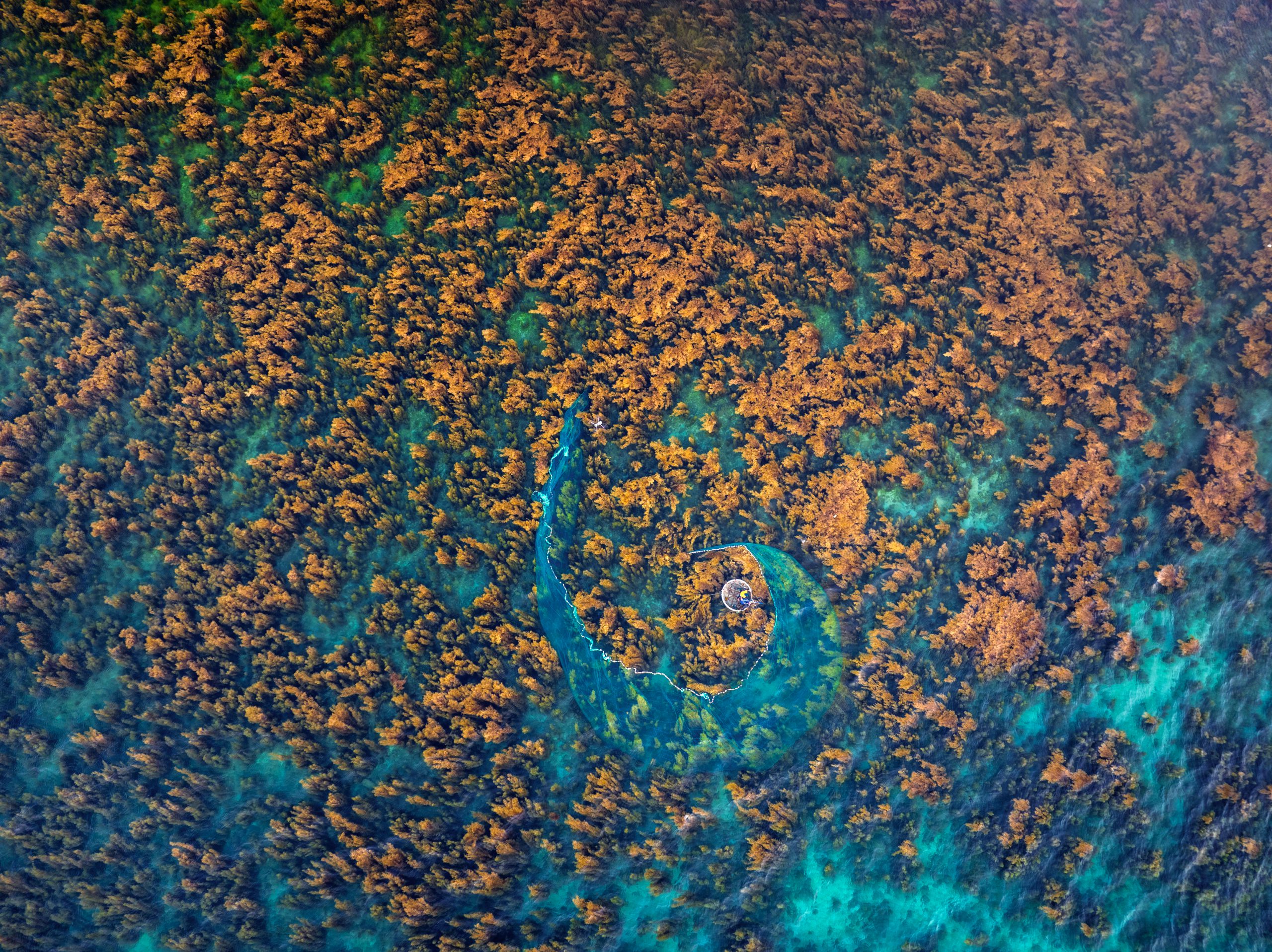 Sargassum is a brown seaweed that typically grows around coral reefs at depths of three to six meters. The seaweed is ready to harvest once large patches have grown enough to float on the ocean’s surface. Sargassum is both a nutritious food for coastal people and a precious, high-value medicine that can increase villagers’ income. Large-scale harvesting requires bigger vessels and oxygen compressors, while small-scale operations only require coracles or handmade rafts from which to dive in coastal waters.