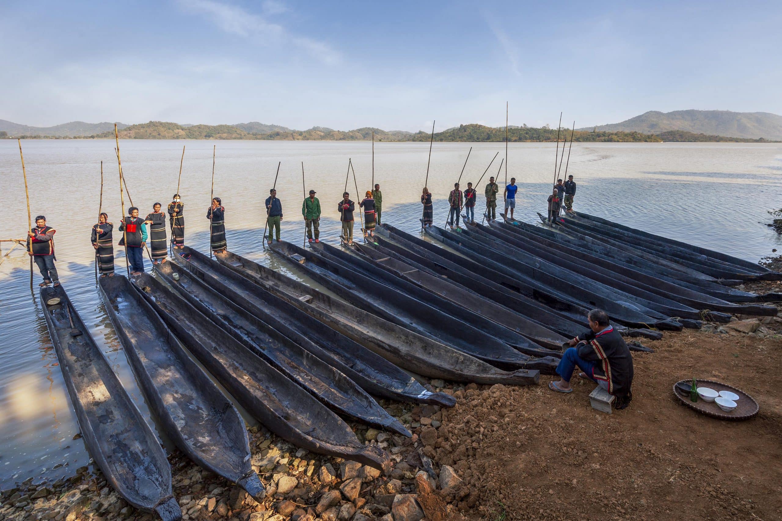 A typical plung can carry three people and undergoes a family recognition ceremony and launching ritual before it is paddled by young men and women or used to carry passengers on the turbulent Father Krong Kno River and the gentle Mother Krong Ana River. During the initiation ceremony, the M’Nong people prepare many dishes and open jars of rice wine to announce the event to the spirits and invite their ancestors to bless the craft and pray for safety when putting the boat in the water.