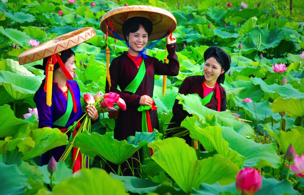 While the Duong is not long, it played an essential role in the formation of Dai Viet over thousands of years. As well as carrying historical lessons, the Duong bears cultural treasures in the form of village landscapes, local agriculture, and handicrafts that comprise the unique identity and prosperity of this rural region. The name of the Dau region and the Dau River, a branch of the old Duong, allude to the area’s famed mulberry cultivation, sericulture, and fabric-weaving. Old verses like “O homeland, sweet fragrance of rice / Vibrant Dong Ho paintings of chickens and pigs … Bustling Ho and Sui markets / And Tram Chi’s grounds full of weavers…” still hold true to this day. Visitors can explore bustling Dong Ho, known for its traditional paintings, Xuan Lai bamboo and rattan village, and Dai Bai bronze casting village.