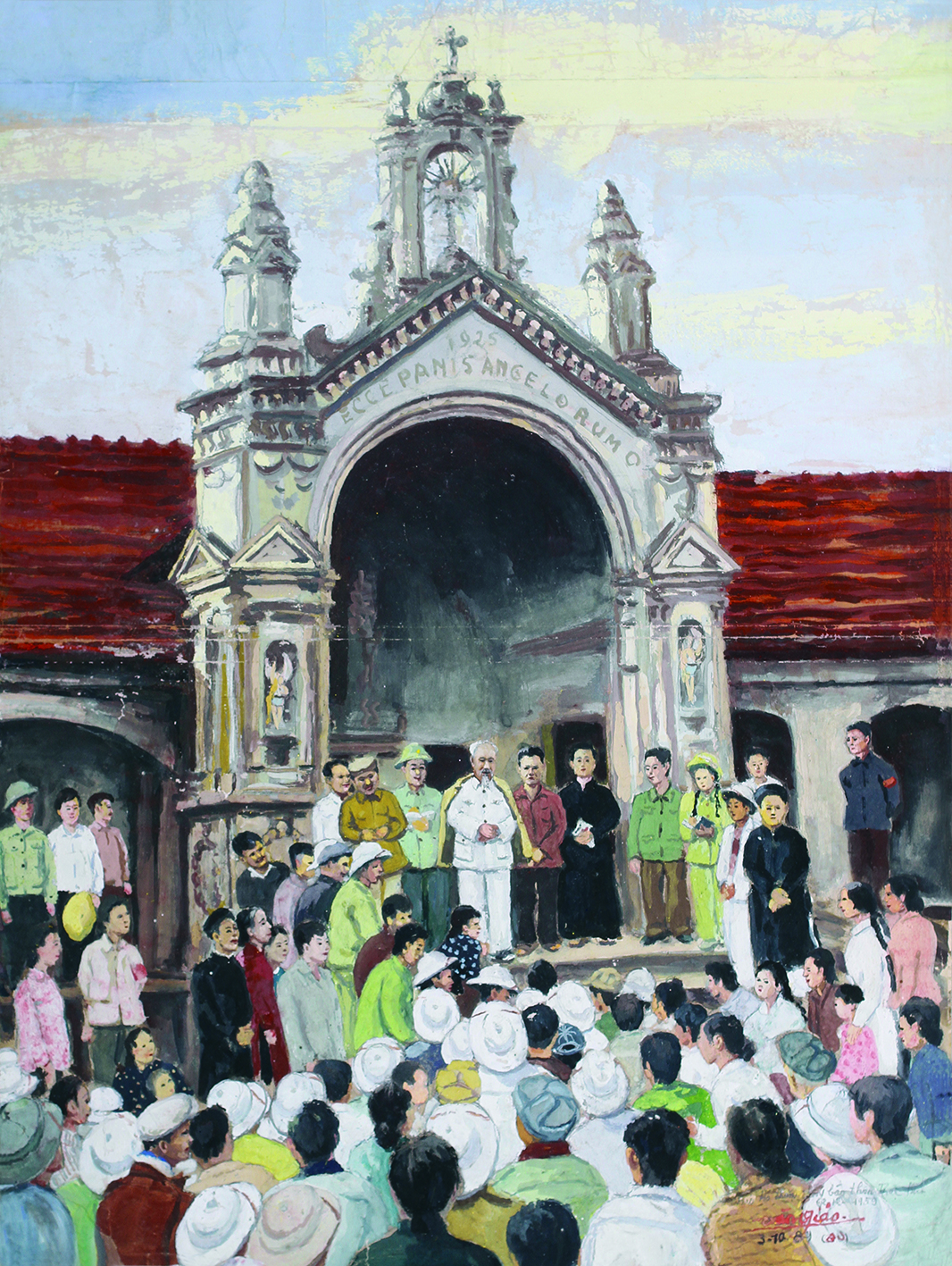 Mr. Van Giao’s works capture the beauty of Vietnam’s diverse landscapes from North to South. He spent his career traveling, painting and exhibiting his creations. His style was realistic, but enriched with revolutionary and romantic influences. Few artists could rival his skill at capturing light. Revealing his personal experiences, his works highlight his love of beautiful landscapes, glowing light and passionate colors. His works captured familiar scenes at different moments – at dawn, at noon on a summer’s day, at sunset, or even in the dark of the night. While his work “The Temple of Literature” captures the lively light of midday, “The Uncle stays awake this night” depicts Uncle Ho’s stilt house at night, giving us a cozy feeling thanks to the shining light of a kerosene lamp. This profoundly romantic painting leaves an impression of Uncle Ho’s subtle spirit shining in the night.
