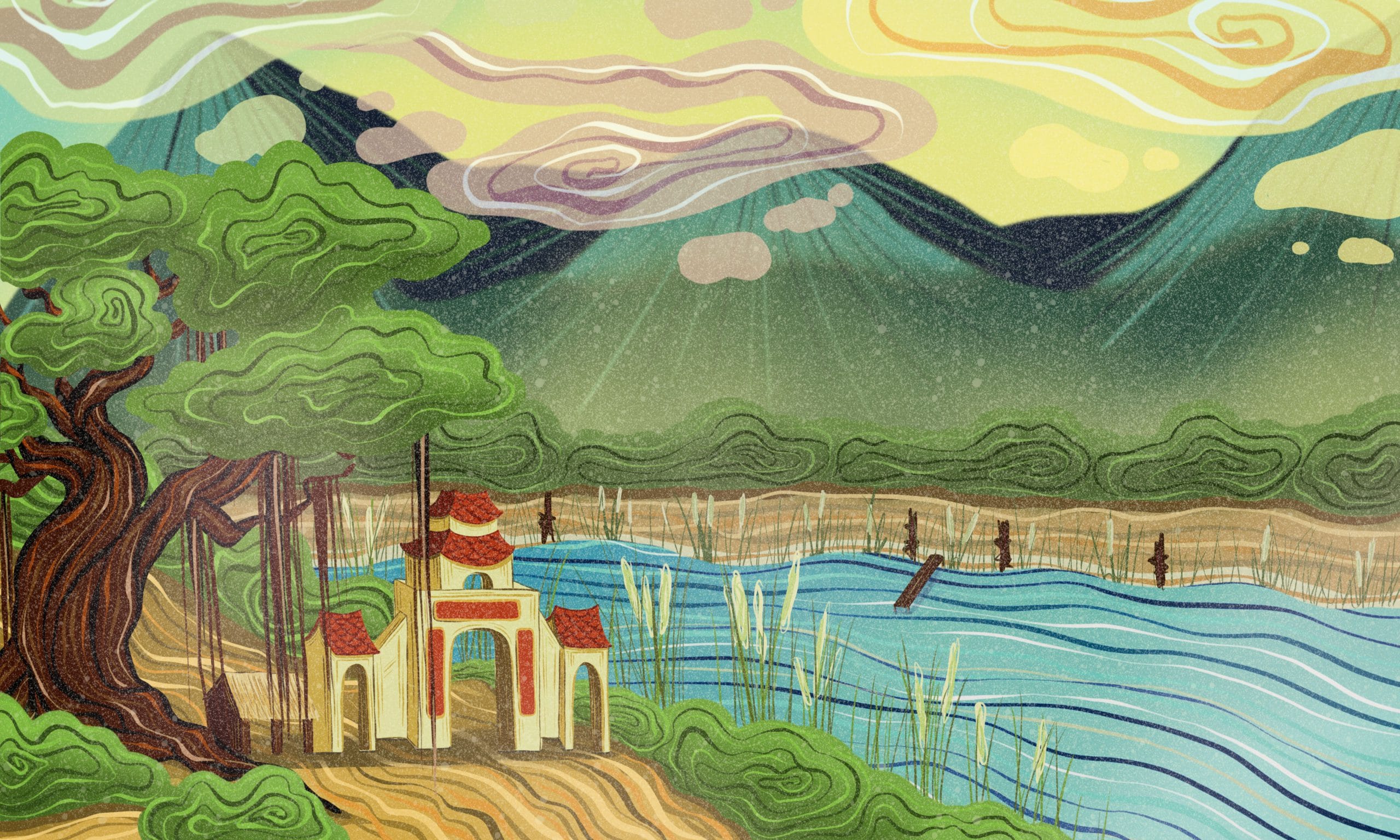Not wishing to be too harsh, Tu Thuc allowed some locals more time to pay their taxes. He was summoned before the senior mandarins and reprimanded. Tu Thuc decided to resign. He traveled home to visit his parents. After spending a few days in his village, he remembered the invitation of the young woman he’d met in the pagoda. He traveled through the wilderness but could not find her village. Tu Thuc kept searching.
