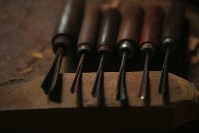 As well as displaying skillful carvings, wooden statues from Bao Ha have the liveliness of true art. The village’s carvers work with jackfruit wood, which is soft, elastic, resistant to termites and water, widely available and less expensive than some other woods. Parts of the statue are carved and jointed to form the complete statue. After carving, the statue’s clothes and features must be painted and gilded. It generally takes about ten days to carve the statue’s form and five days to paint and finish the statue. The statues are gilded to help preserve them. Along with statues, carvers in Bao Ha produce ceremonial items such as incense urns, gilded signs, parallel sentences, gilded altar gates and lacquer paintings.