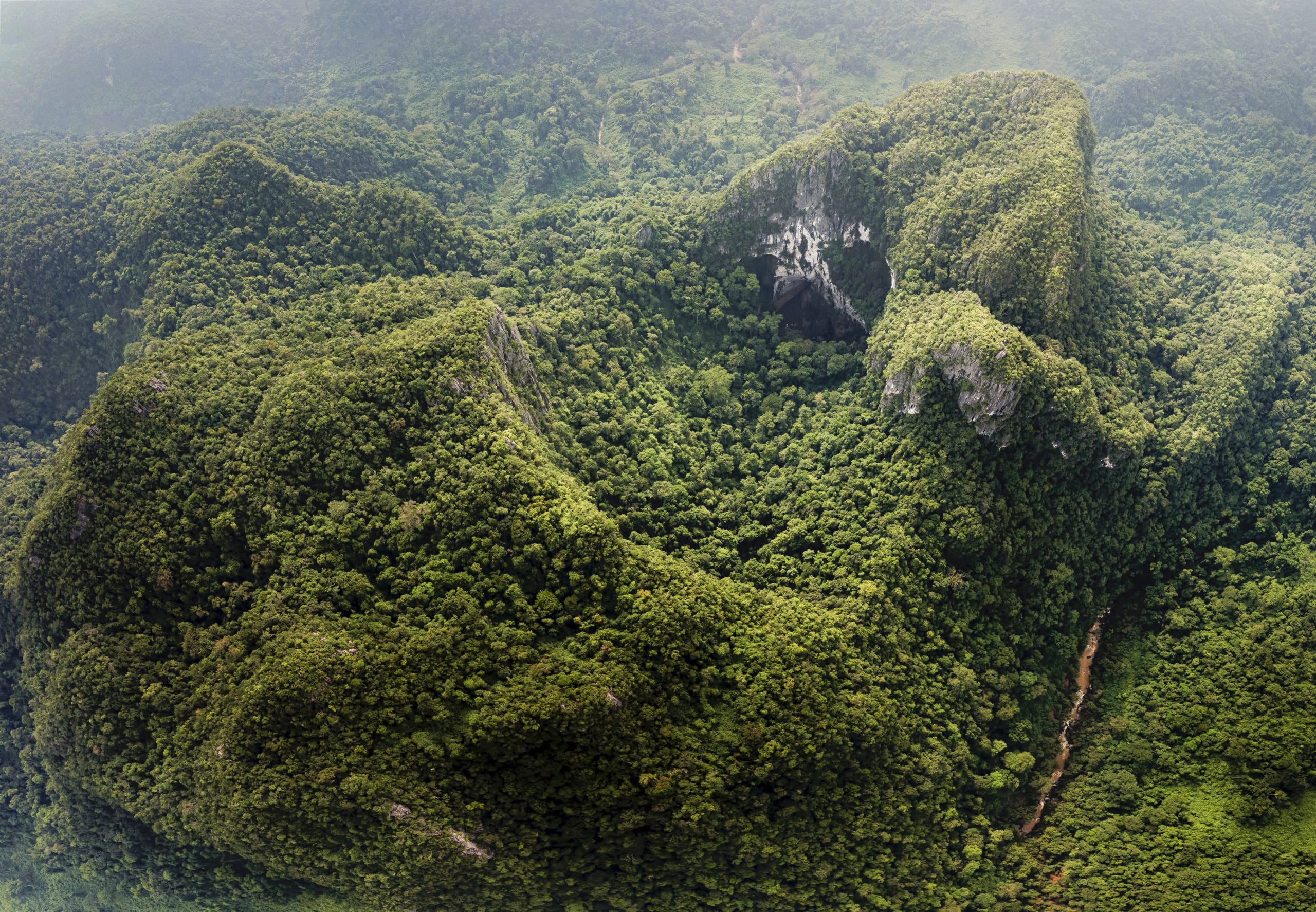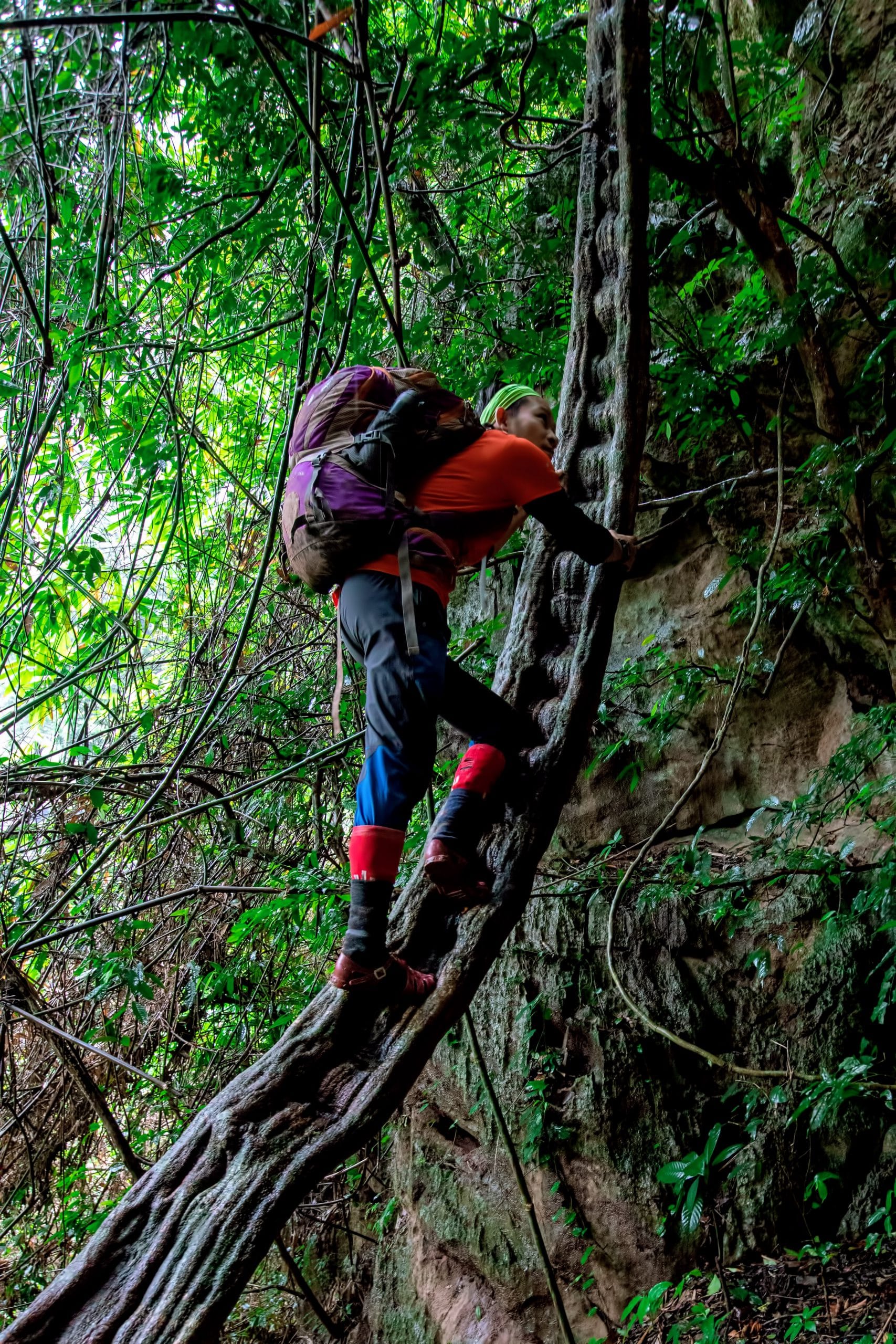 Pygmy Cave, also known as En Ruc Ca Roong Cave, is currently the fourth-largest cave in the world, according to the British Caving Association, after its discovery in 1997. In its vast entrance, humans appear very small. After the intense rock climbing, our crew arrived at a camp site in the main entrance where we spent our last night.