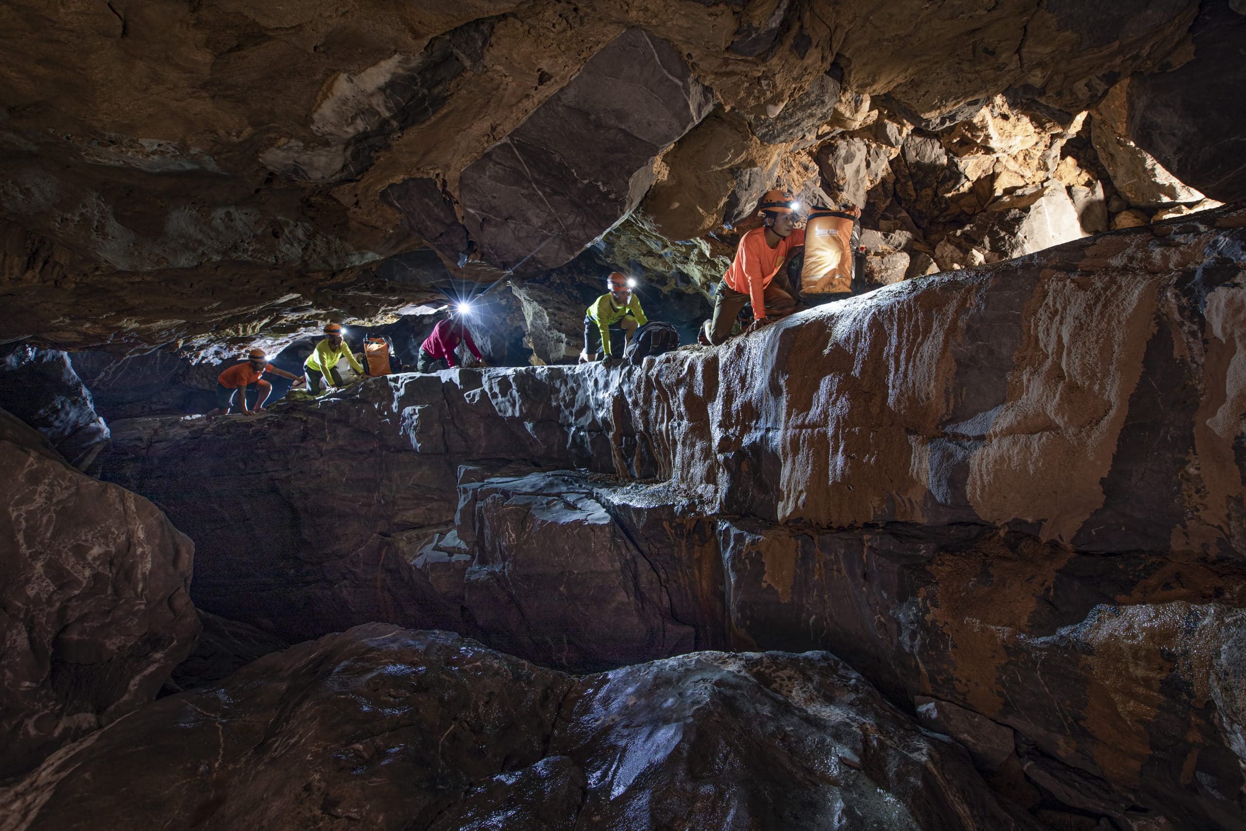Join us on a three-day, two-night tour to discover the Tiger Cave system. In terms of route complexity, the Tiger Cave Series Adventure Tour is ranked 6 /7, with 7 being the most challenging. We were excited to attempt various challenges, such as crossing rocky terrain, swimming through underground rivers, swinging on ropes, rock climbing, and more.