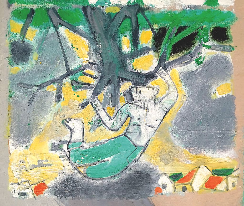 Unfortunately, Cuoi’s wife experienced strange mental changes. She became forgetful, which irked her husband. Cuoi constantly reminded her to relieve herself in the western corner of their yard, lest the banyan tree soar into the sky, but she often forgot. One afternoon when Cuoi was out collecting firewood, his absentminded wife went into the backyard and urinated near the precious medicinal tree.
