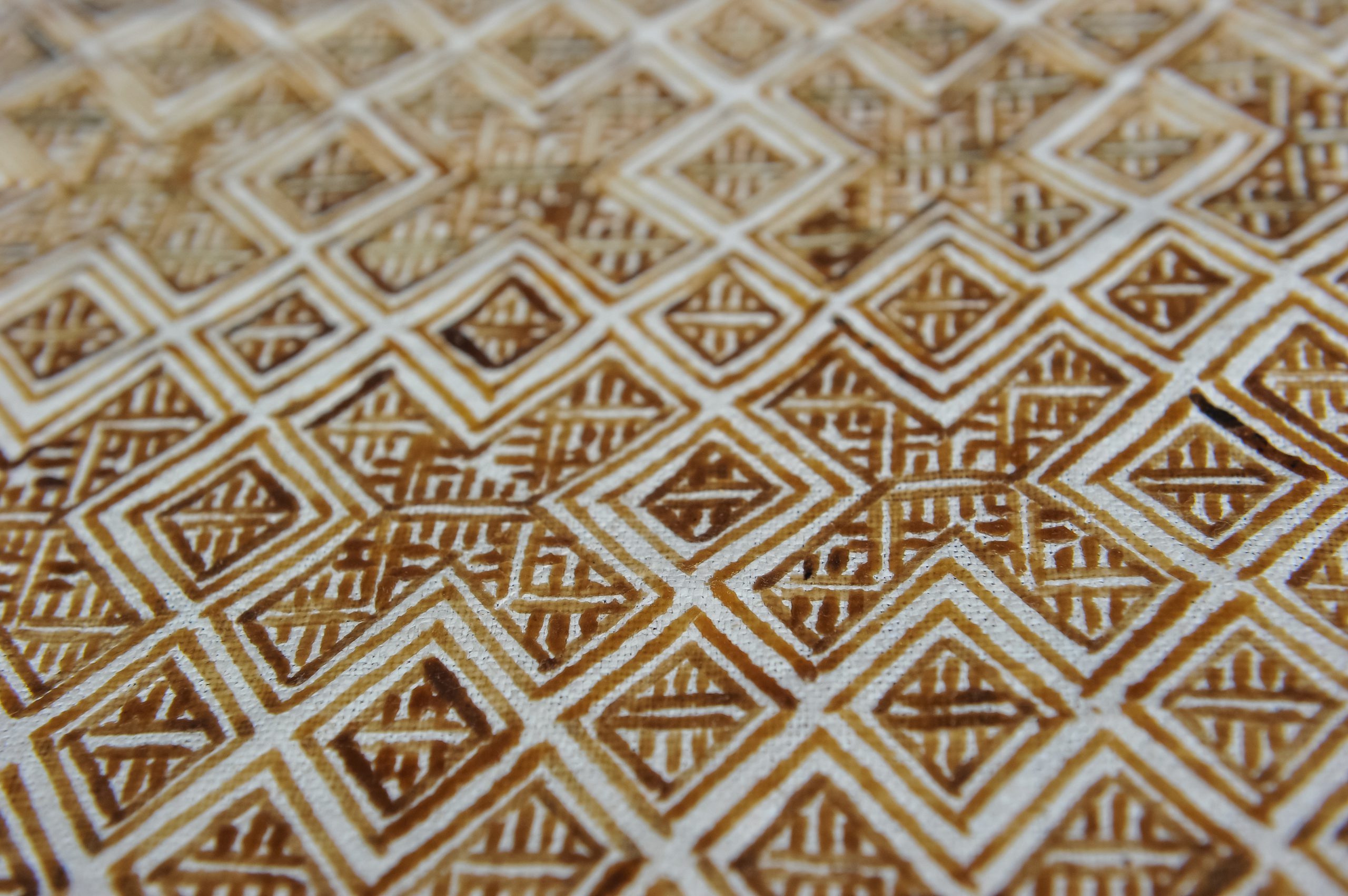 Indigo is central to the clothing of Tay, Nung, Thai, H’Mong, Dao, and some other indigenous groups in the Northern highlands, as well as some ethnic groups in Central Vietnam. The lengthy dyeing process begins from the harvest. The indigo plants are sown in the third lunar month and harvested three months later when the bushes stand roughly one meter-tall. The bark and leaves are removed, soaked, and fermented in water tanks for 10 to 15 days, until the water turns blue. Powdered lime is then added and mixed until an indigo paste settles at the bottom. This paste is collected and put into baskets to drain. One month later, it’s time to make the vats of dye. In large pots, the artisans mix boiling water with fragrant leaves and indigo paste, and ferment this mixture for two to three days. At this stage, the water turns a deep dark blue color and is ready to be used for dyeing. Fabrics, usually cotton, are repeatedly soaked in the indigo dye two or three times per day for several days, until an even color of the desired light or dark shade is achieved. It takes half a year to produce one new indigo-dyed sheet.