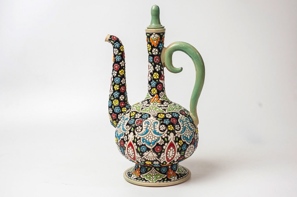 While Turkish ceramics are flamboyant and Japanese ceramics simple and solemn, Iranian ceramics have an elaborate and sophisticated beauty. Thanks to its highly developed ancient culture and an abundance of natural materials, Iran’s ceramics industry dates back to the 2nd century AD. Archeological digs have unearthed ceramic workshops in many regions including Chogha Zanbil and Susa. The ancient ceramics produced here were very sophisticated in terms of their coloured enamels, which were made from crushed minerals and plants.