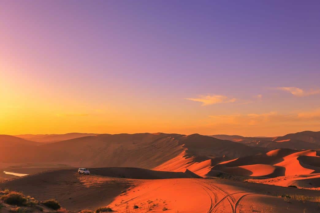 Locals here mainly herd animals and work in tourism for a living. To enter the desert, you must rent a specialized off-road vehicle and a local driver. There are two challenges for drivers in the desert. The first one is the route: the driver is a herder who knows the way around the desert even without GPS, so scenic spots can be visited. The second one is driving safety: the Badain Jaran Desert is different from other deserts, with sand dunes rising and falling continuously. As soon as an off-roader plunges down a sandy slope with an incline of over 50 degrees, it immediately surges towards the foot of the dune while violently shaking from side to side. When driving here, drivers must always pay attention to the changing terrain and weather. They also need to have their vehicles offloaded and their tires deflated to increase traction.