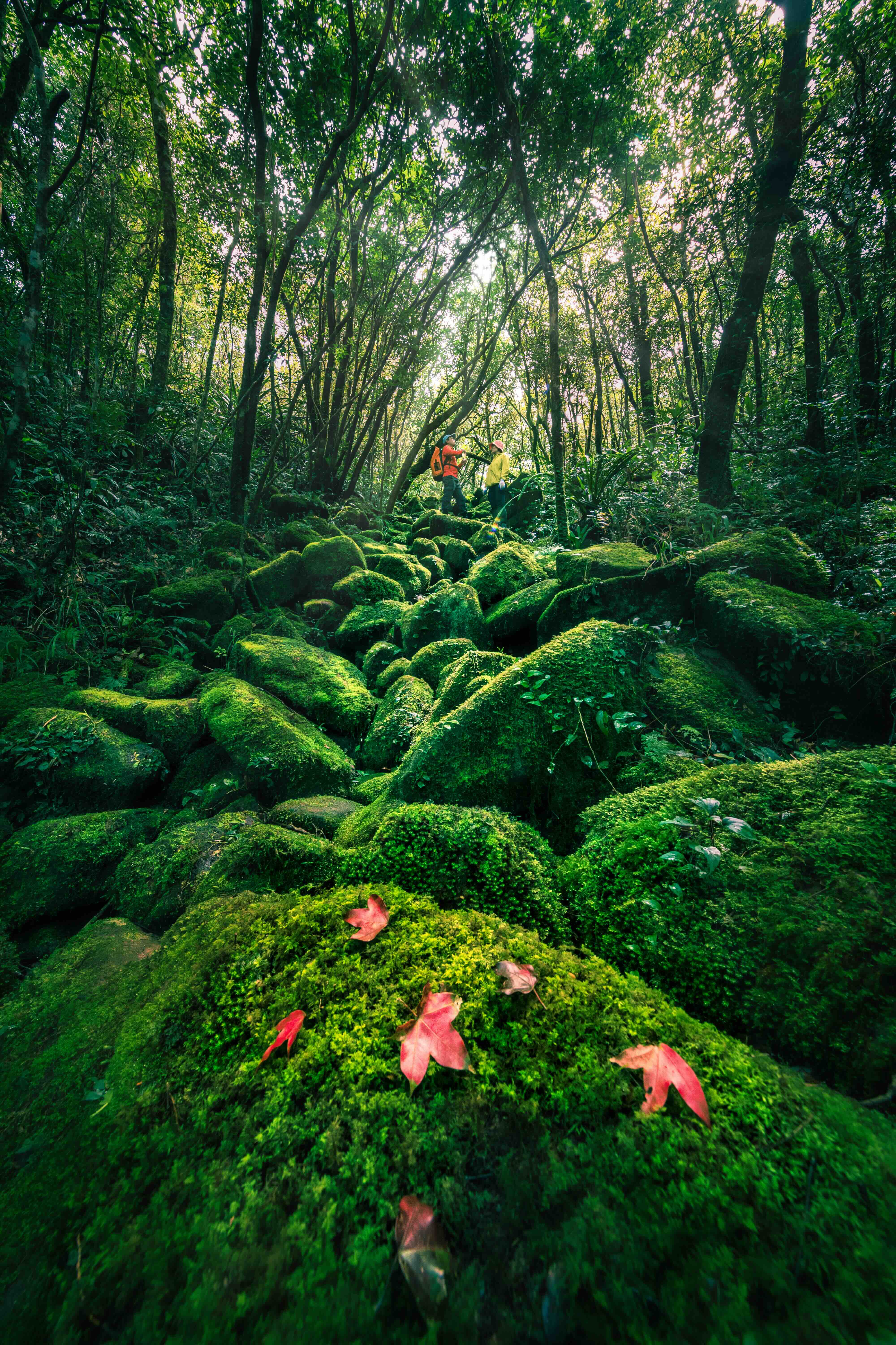 Once we entered the primary forest, the air turned cool and fragrant. Sweetgum, wild pineapple, Ngoc Linh ginseng, wild orchids, and many plants unknown to us lined the path. The thick layer of dry leaves underfoot felt as soft as a carpet, while the high canopy swayed gently, shielding us from the sun and from passing jungle showers that left only a few silvery drops on our sleeves. At times, the slopes grew so steep that the Van Kieu porters called them “four-legged climbs”: passable only by gripping roots and rocks. Still, our group slowly pressed on. Amid the vast green, flashes of crimson appeared: red maple leaves, heralds of the approaching autumn, when the entire Truong Son Range glows with fiery foliage. The very thought of this crimson forest stirs the heart of any lover of nature and art.