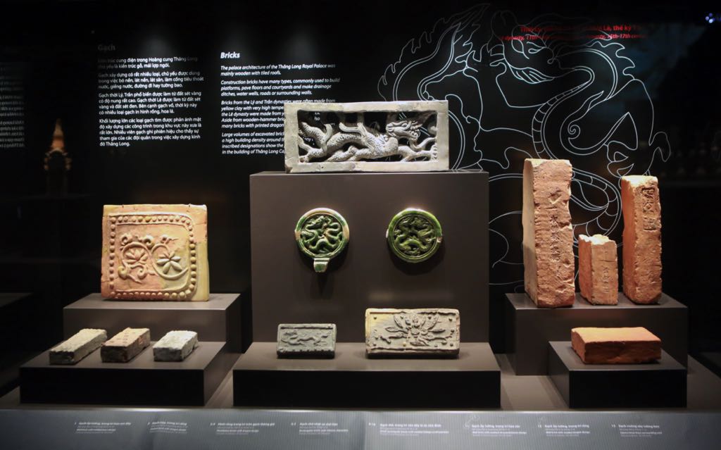 The museum’s focus is on artifacts from the Ly, Tran and Preliminary Le dynasties that were unearthed at the site, which once stood southwest of the Forbidden Palaces. Many sizable and intact Bodhi leaves decorated with dragons and phoenixes were used on the palace’s roof. Archeologists have found traces of ceramic production in Thang Long such as stacks of unfinished bowls. This points to the existence of famed ceramic workshops in Thang Long, which not only supplied wares to the Imperial Palaces but also exported merchandise to the Philippines, Indonesia, Japan and Western Asia. Artifacts include decorative Mandarin duck roof statuettes, chrysanthemums, Bodhi leaves and tiles with dragon heads, Buddhist stupas, human ceramic figures of modest sizes, lime pots for betel, pottery pipes and enamel pots dating back to Le Dynasty.