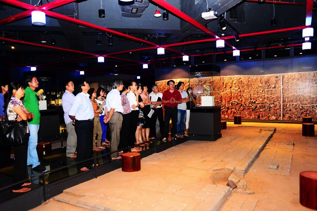 The essence of the Thang Long Imperial Citadel is on display in the museum: imposing stone bases decorated with sharp grey lotus patterns to support pillars; and fine ceramic and porcelain items from different eras… The artifacts’ beauty is accentuated by advanced technological features and display techniques. Large glass panels cover archeological dig sites, allowing visitors to feel the thrill of discovery. There are even cross-cut strata full of historical layers: Pre-Le, Ly, Tran, Preliminary Le and Nguyen. These displays help visitors to understand the past and see how scientists work.