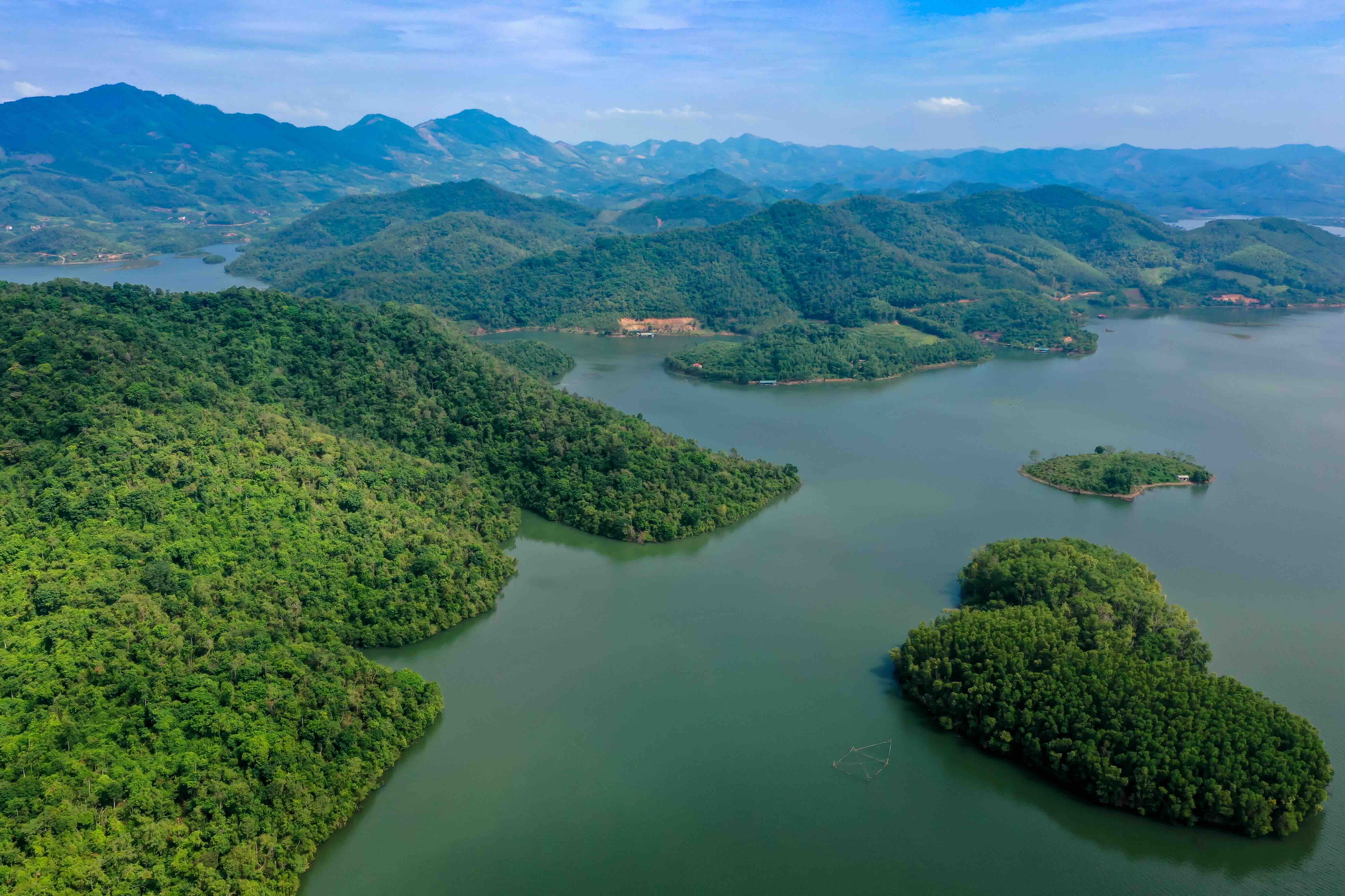 Ranked among the five largest man-made lakes in Vietnam, Cam Son spans nearly 30 kilometers, with a surface area reaching up to 3,000 hectares, depending on the season. It was originally built to store and regulate freshwater for the large downstream communities along the Thuong River. Beyond its role in irrigation, Cam Son Lake offers great potential for tourism development thanks to its beautiful landscape of forested mountains and small islets.