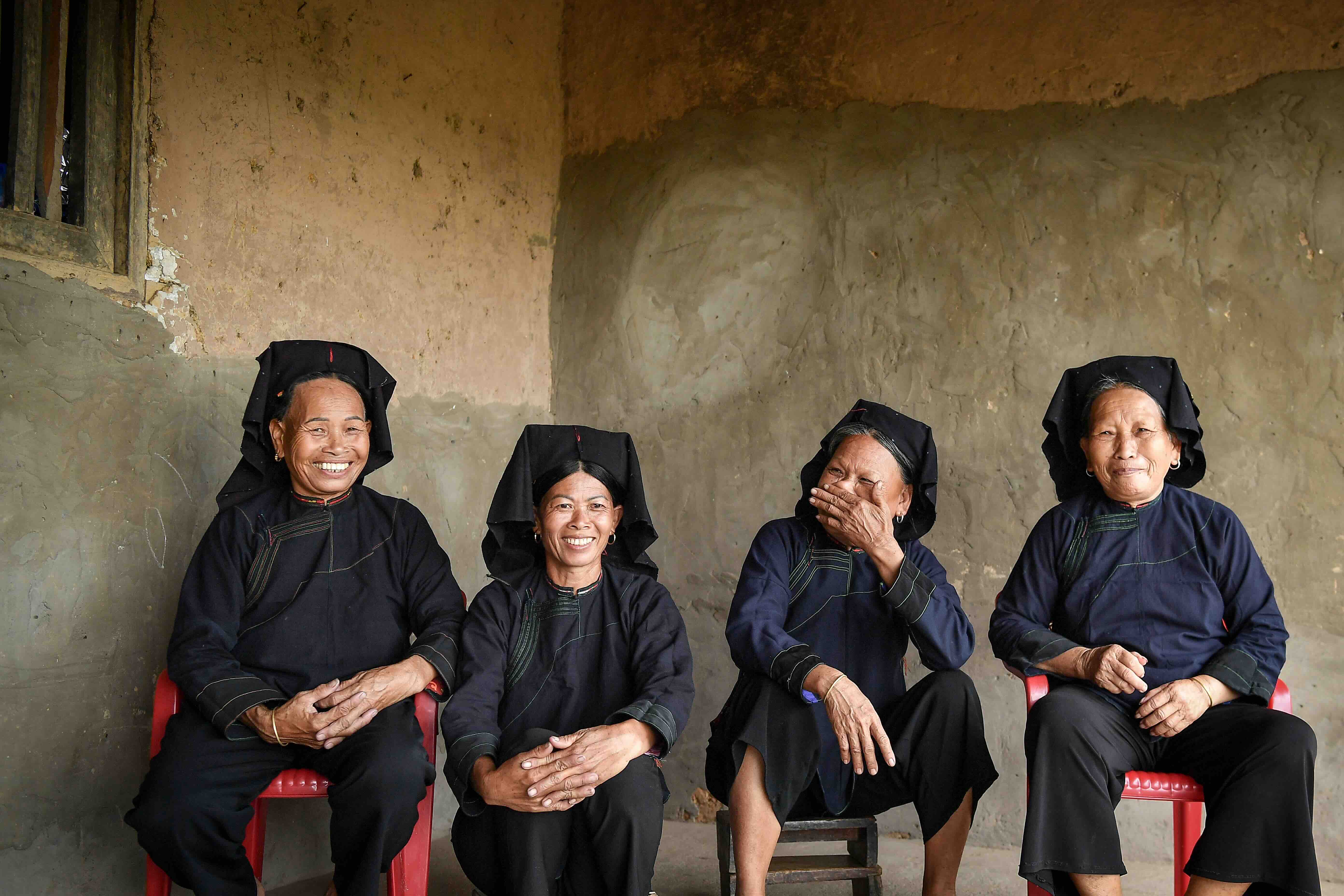 A group of Nung women in traditional dress