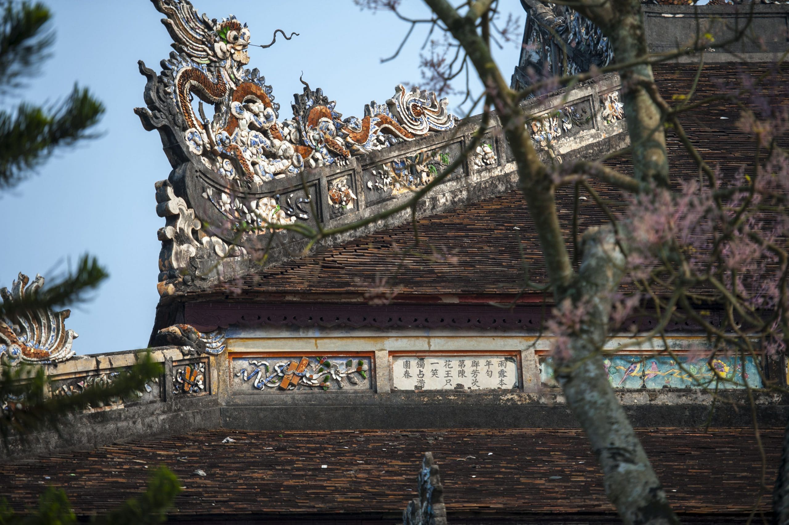 As the capital of a dynasty that held education and knowledge in high regard, Hue is home to a treasury of knowledge. According to the late professor Tran Van Giau, compiled and printed publications from the Nguyen Dynasty outnumbered those of all preceding dynasties combined. Woodblocks (woodcuts used to print the dynasties’ publications), Royal ordinances (official dynastic letters reviewed and approved by emperors and signed with vermillion ink) and carved or enamel-coated verses on royal buildings in Hue are all magnificent documentary treasures. Despite the upheavals of history, over 34,600 Nguyen Dynasty woodblocks are stored and preserved in the Storage Center IB in Dalat. Tens of thousands of sheets of royal ordinances are stored in the Storage Center I in Hanoi. Remaining in Hue are the verses carved onto royal buildings.