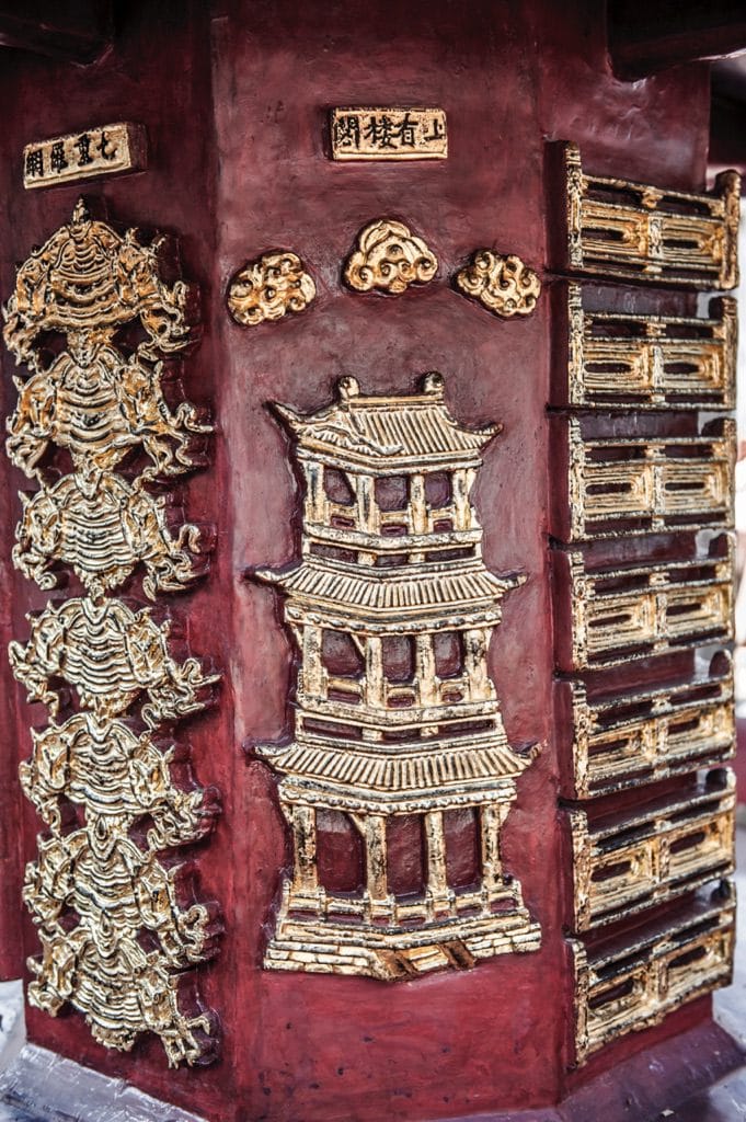 Bas-reliefs on the Lotus tower at But Thap Pagoda, Bac Ninh province