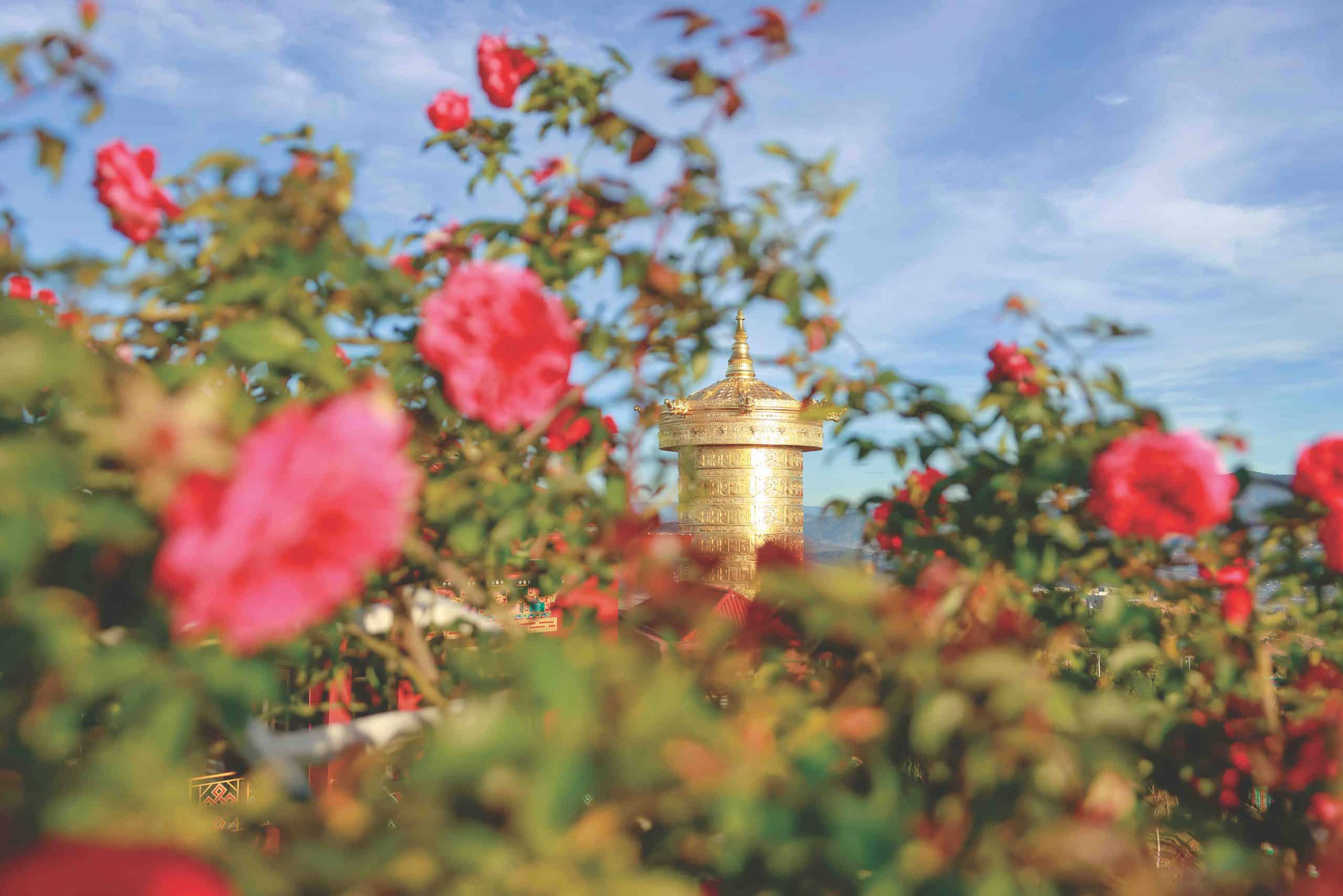 Wearing comfortable shoes, I strolled on a red brick path leading uphill. Roses bloomed all around, their fragrance permeating the air. In the afternoon sun, the scenery was magical, with the walls and roofs reflecting a shimmering golden color. The main courtyard offered an expansive view over endless mountains and hills. The breeze from the valley was refreshing. The scene became even more spectacular as the sun gradually set, painting the entire sky in a brilliant pink- orange hue.