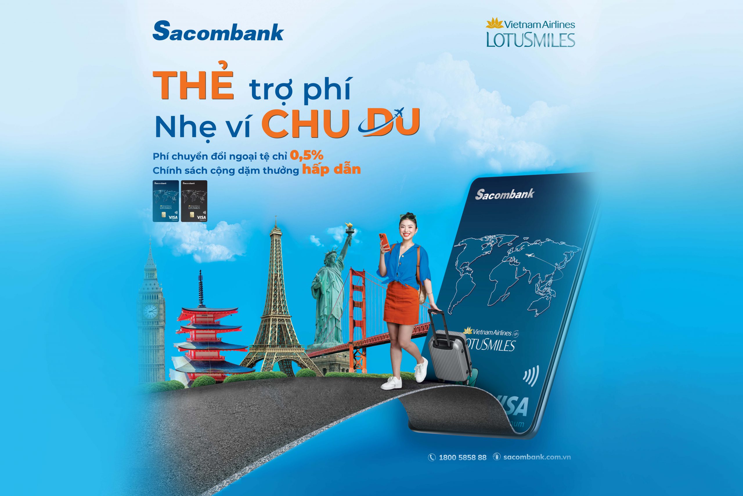 From now until December 31, 2023, Lotusmiles members can enjoy exclusive benefits by opening a new Sacombank Vietnam Airlines Visa Signature or Sacombank Vietnam Airlines Visa Platinum credit card, to receive VND500,000 cashback when spending VND1,000,000 within 30 days from the card’s activation date.