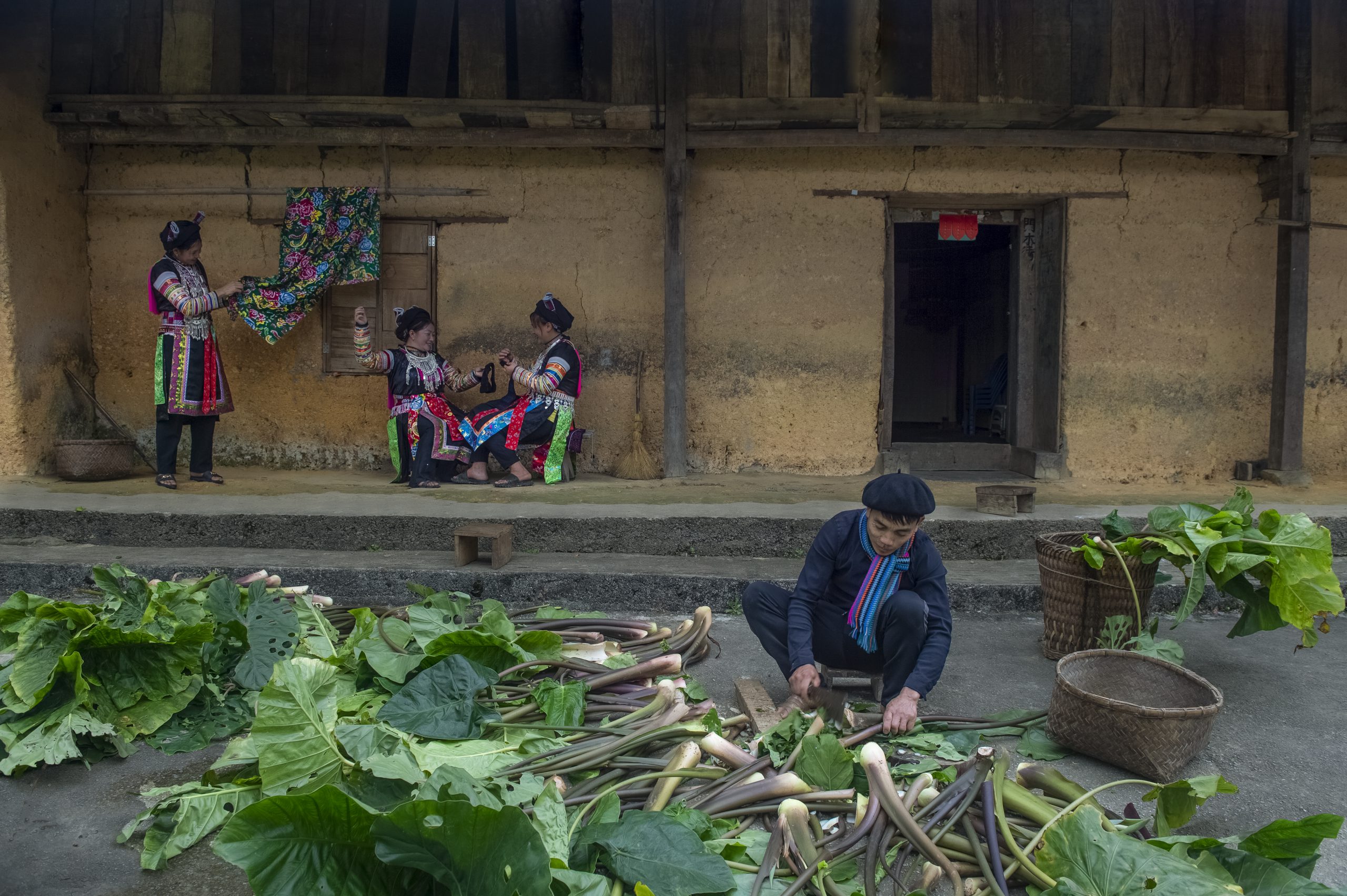 As time gently courses through this region, Red Dao people diligently maintain their traditions, which are imbued with the spirit of their ancestors. Visitors returning to the city after spending time in Quan Ba may fondly recall Red Dao women’s colorful hems, like vibrant flowerbeds on the austere stone plateau.