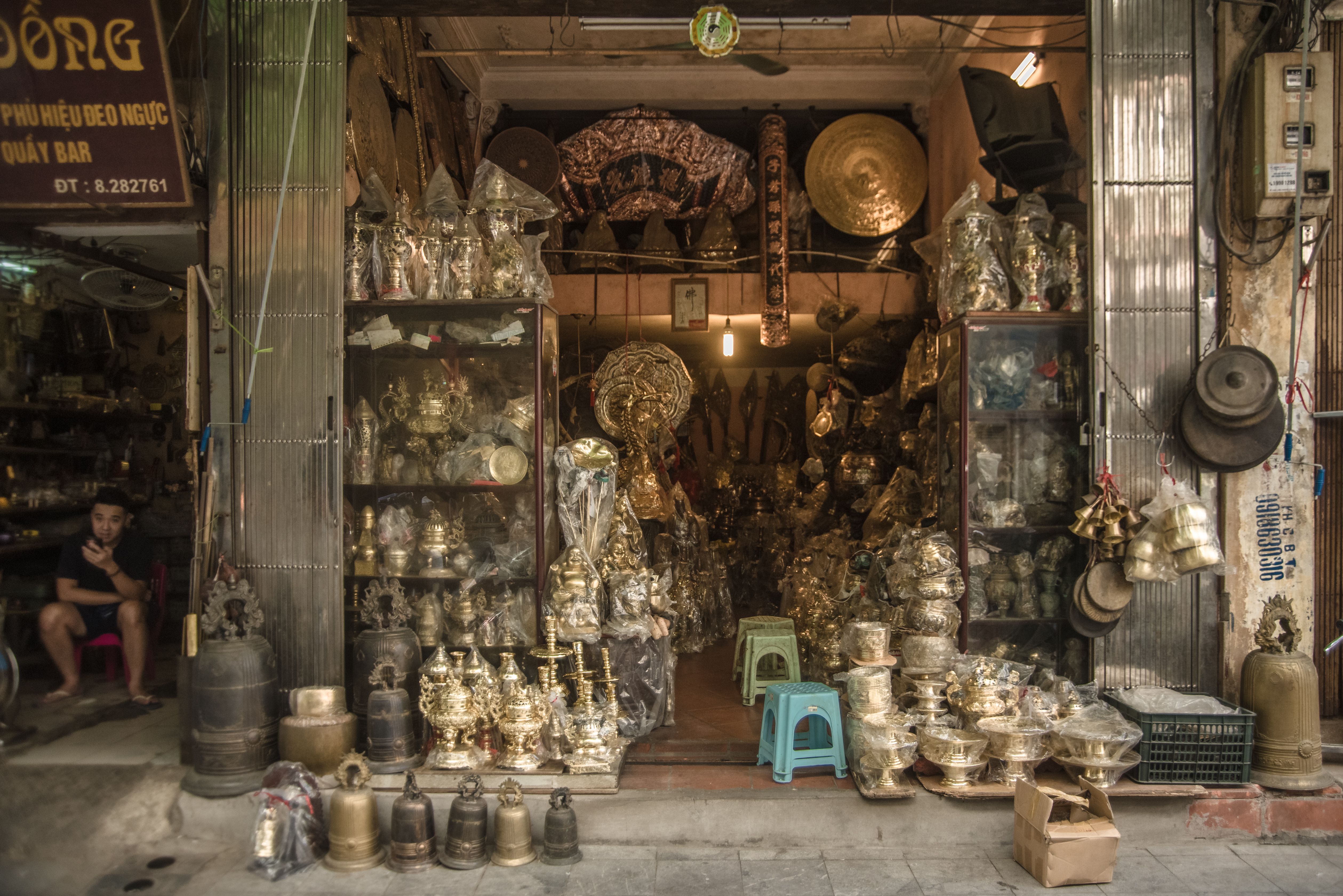 The village’s men were mostly bronzesmiths, while the women purchased the materials. After a product was cast, it was shined by the family’s women and apprentices, then sold in stores on Hang Dong Street in the Old Quarter.