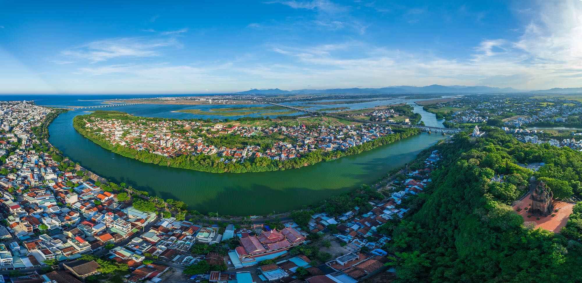 During the Champa period, many structures were scattered across the river’s lower basin in the Tuy Hoa Delta. Relics of Champa culture remain widely visible today. Treasures gradually unearthed during the ongoing Vietnamese settlement include the fourth-century Cho Dinh Stele at the foot of Nhan Mountain to Nhan Tower, the ruins of Phu Lam Tower, the Ho Dynasty Citadel, ancient ramparts, Cham well systems, sandstone heads, steles, and terracotta bas-reliefs.