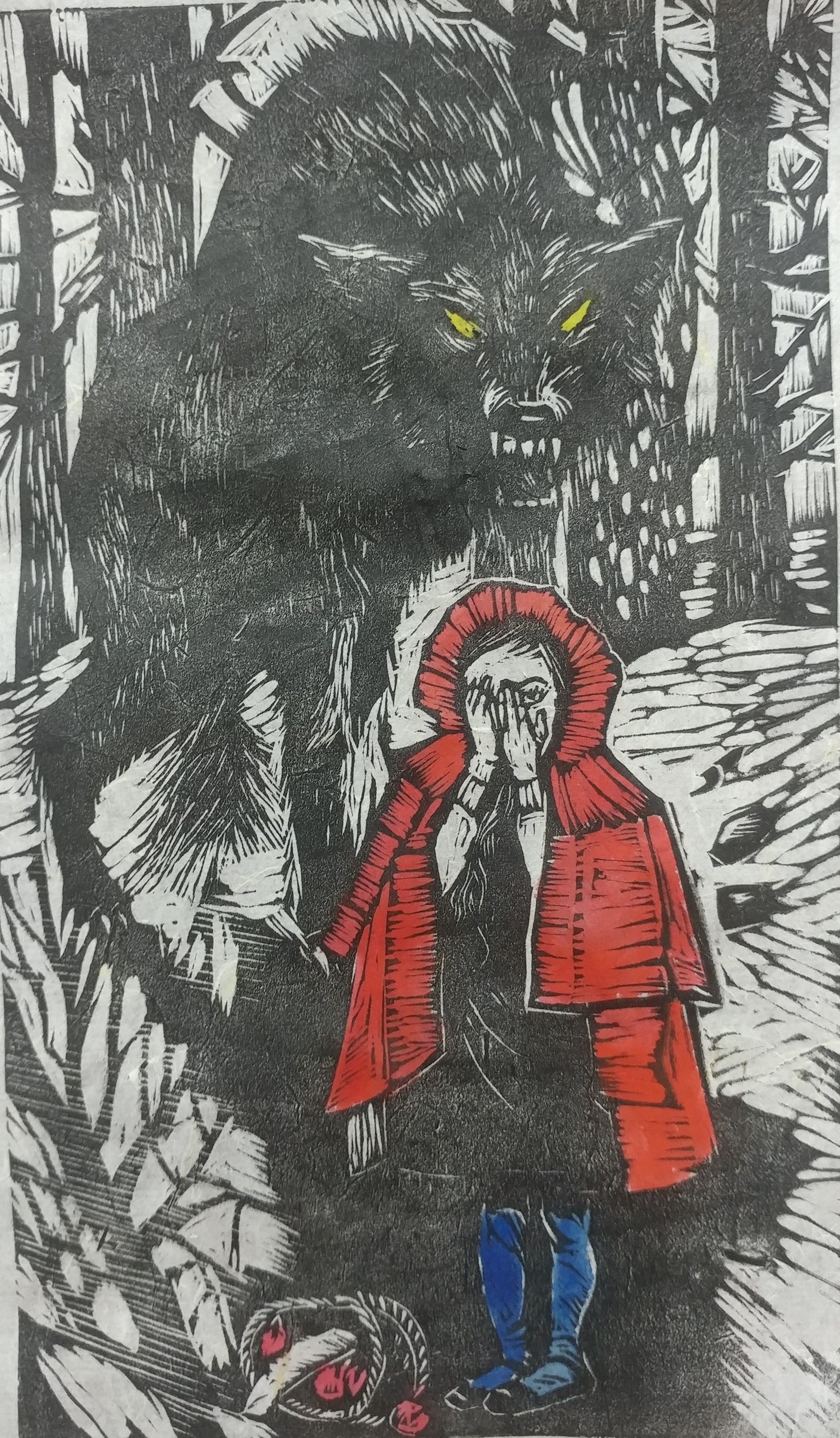 One day, the girl’s mother said: “Your grandmother is unwell. Please take her some cake and wine. Be sure to stay on the path, walk straight there, and don’t dawdle!”